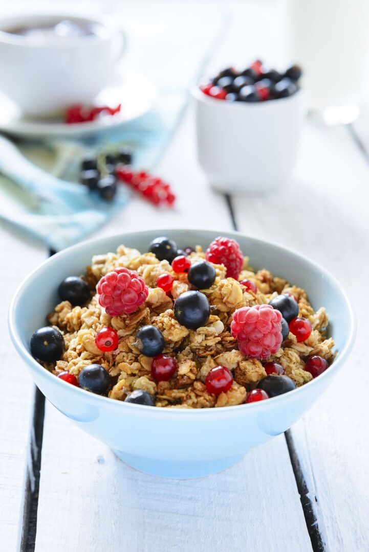 Dass süße Schoko-Flakes und bunte Honig-Popps einen hohen Kaloriengehalt haben, ist klar. Doch auch viele Müslisorten sind wahre Zuckerfallen. Wer auf Nummer sicher gehen will, sollte die Zutatenliste studieren und nur zu Produkten ohne zugesetzten Zucker, Schokolade oder süßen Crunchies greifen. Oder ihr mixt euer Frühstücksmüsli einfach selbst!