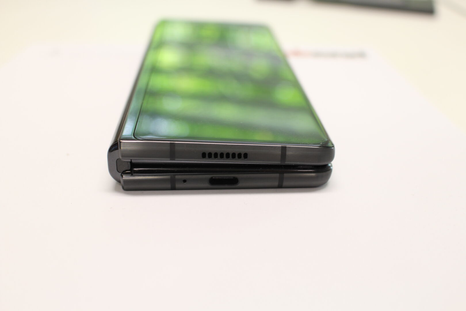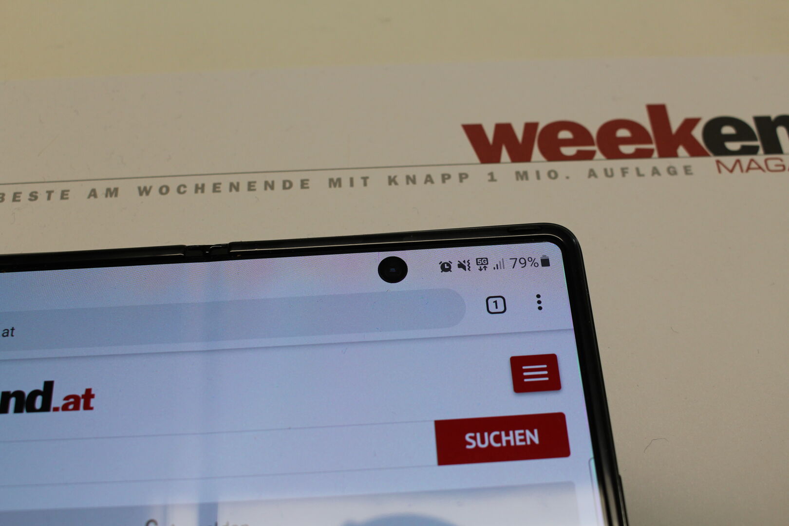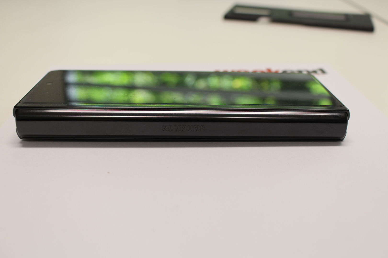Star des Geräts ist aber das faltbare 7.6-Zoll Innendisplay. Es löst mit 2.208 x 1.768 auf und bietet eine Pixeldichte von 373 ppi sowie eine adaptive Refreshrate von 120 Hz und sorgt damit für butterweiches Scrollen und eine ruckelfreie Bedienung. Dass Samsung bei einer neuen Technologie bereits in der zweiten Generation so eine Verbesserung anbieten kann, ist beeindruckend. Das Display wird mit einer von Samsung werkseitig installierten Displayfolie geschützt, das Display selbst ist eine Glas-Plastik Mischung. Auch in Generation 2 gilt es vorsichtig zu sein und nicht mit Fingernägeln oder spitzen Gegenständen am Innendisplay zu hantieren: Dies kann schnell zu Kratzern führen. Auch bei der vorinstallierten Folie rät Samsung, diese nicht zu entfernen, außer man will es unbedingt, dann sollte man das Gerät jedoch zu Samsung bringen. Ich sehe aber keinen Grund, die Folie zu entfernen, bietet sie doch einen zusätzlichen Schutz.