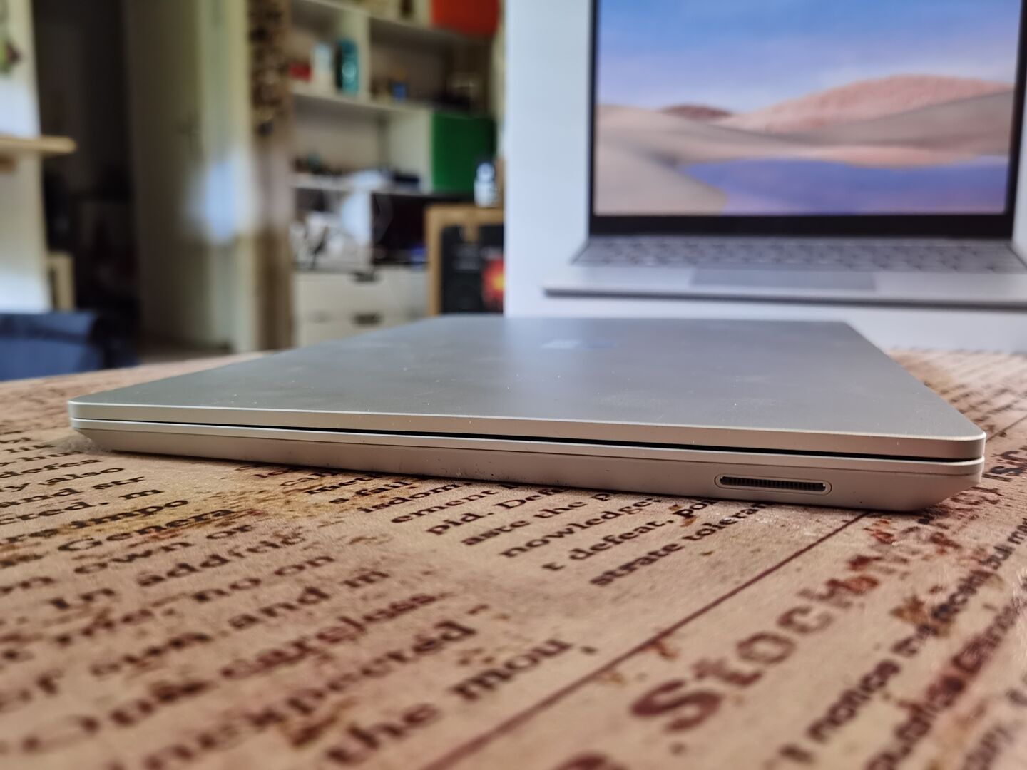 Das Design des Laptops ist schlicht und edel wie wir es von Surface Geräten gewohnt sind. Nichts knarzt oder knackt, das Scharnier des Bildschirm ist schön fest. Hier hat Microsoft wieder hervorragende Arbeit abgeliefert. Aufgrund der Bauweise lässt sich das Gerät aber, wie die meisten anderen Surface-Geräte, nur von Profis öffnen. Reparaturen und der Austausch von RAM und SSD wird dadurch für Anwender de facto verunmöglicht. Die USB-Anschlüsse samt Klinkenstecker sind links beheimatet - rechts befindet sich der Dock-Connector, der zugleich zum Aufladen genutzt wird. Sehr löblich: Auch der USB-C Port kann zum Aufladen verwendet werden. Hab es mit einem 65-Watt Netzteil getestet und das funktionierte einwandfrei.