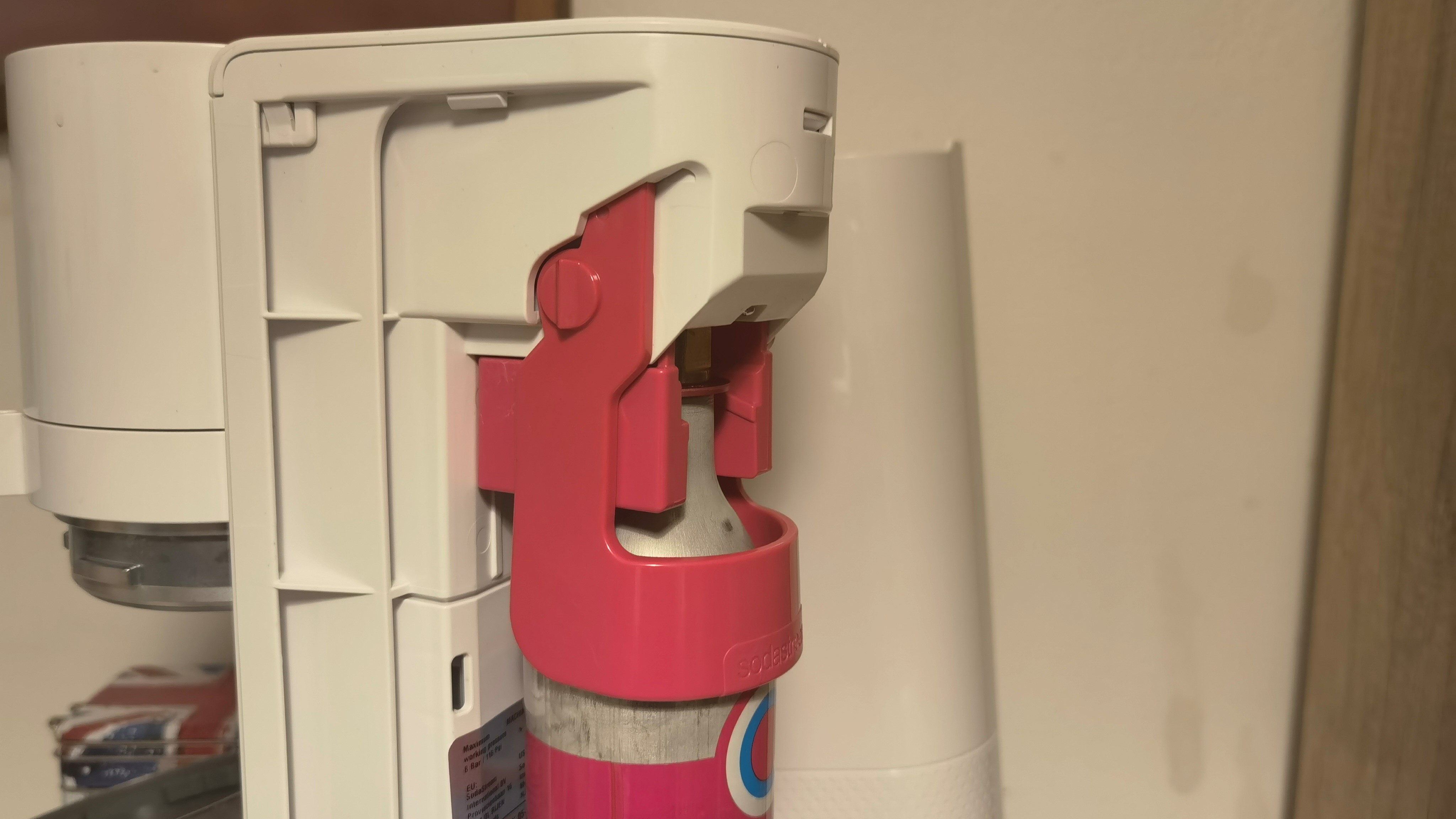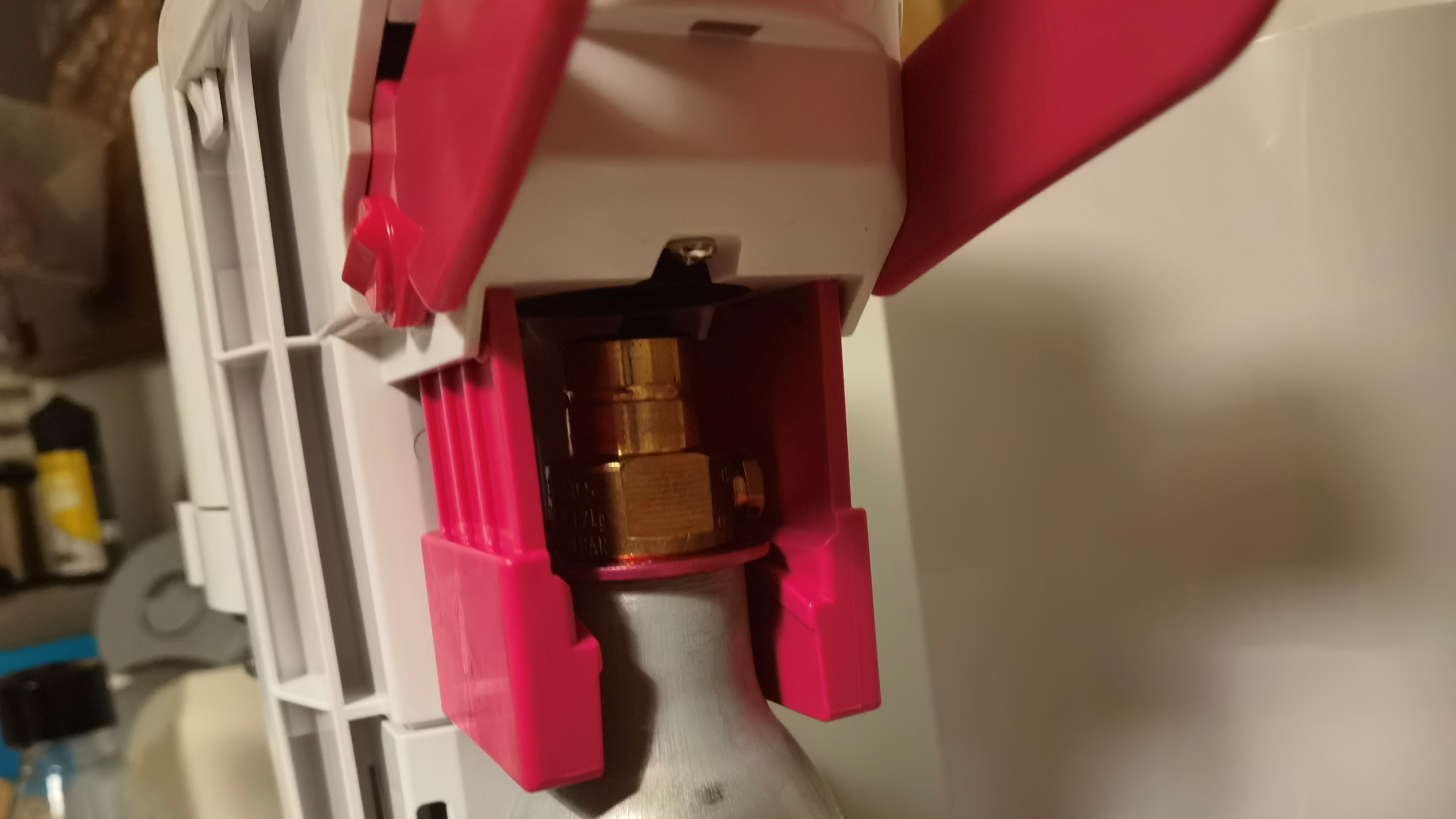 Die beiden Flaschen werden einfach in die vordere Kammer gesteckt, die leicht nach vorne kippt. Dann schließt man die Kammer mit dem Drehverschluss und man kann den oberen Knopf für die Kohlensäure betätigen. Was mir beim Duo fehlt ist das zischende Geräusch der alten Geräte. Nach dreimal drücken kam es da nämlich oft zum akustischen Signal, dass es fertig ist. Das ist beim Duo nicht mehr der Fall, nach dreimaligem Drücken ist aber immer genug Kohlensäure für meinen Geschmack in der Flasche.