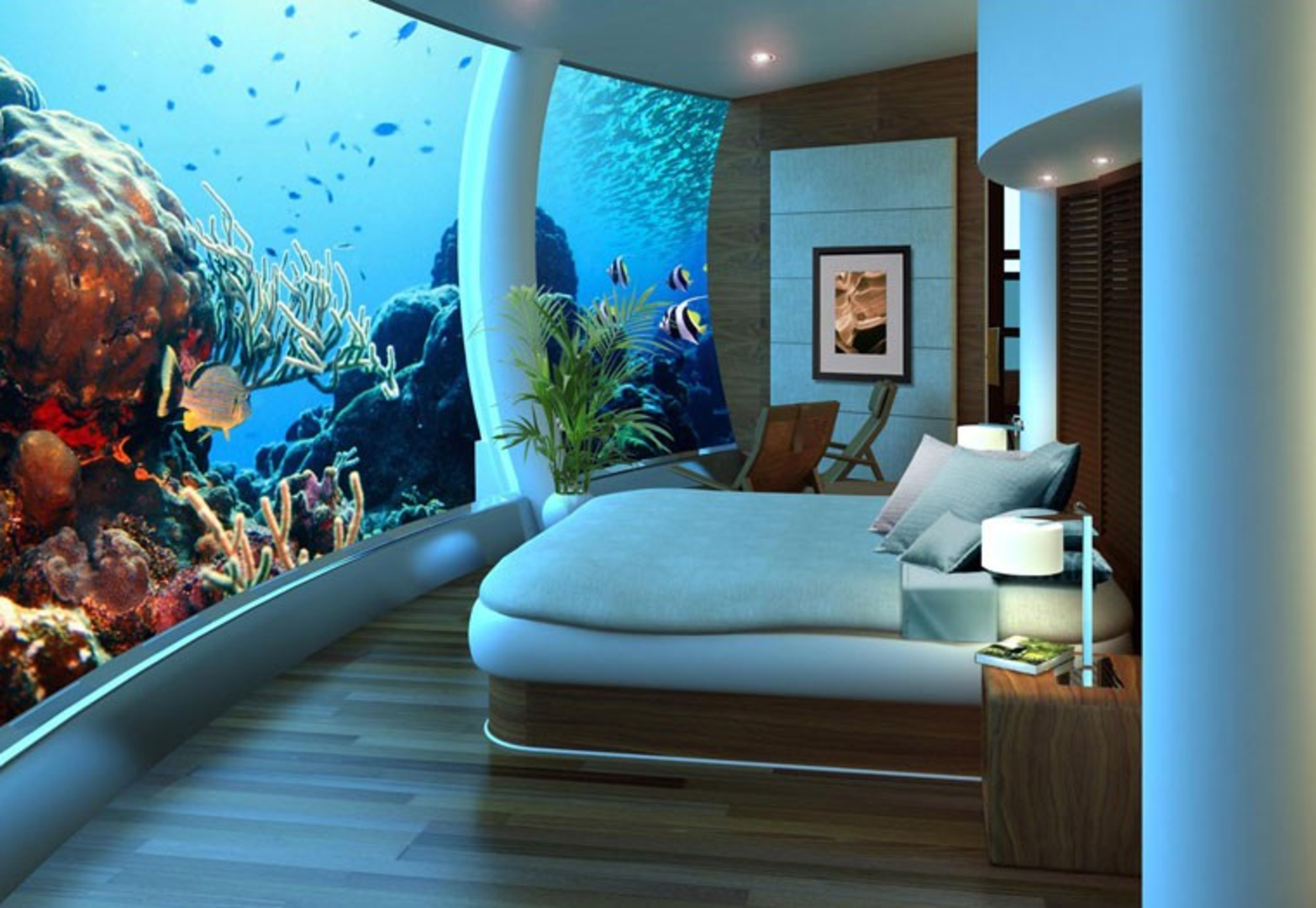 Im nordöstlichen Fidji-Archipel entsteht das erste fünf-Sterne-Hotel, das sich vollständig Unterwasser befindet. Eigentlich hätte das Poseidon Hotel schon 2008 eröffnen sollen, doch finanzielle und strukturelle Probleme legten das Projekt immer wieder still. Insgesamt soll das Hotel künftig 22 Unterwasser-Suiten mit 51 Quadratmetern Wohnfläche und eine Kingsuite mit über 100 Quadratmetern beinhalten. Gäste finden hier auch eine Bar, eine Bibliothek, einen Konferenzraum, einen Spa-Bereich sowie eine Hochzeitskapelle unter Wasser. Billig wird der Urlaub im Goldfischglas nicht: Laut Architekt Bruce Jones beläuft sich der Preis für einen Aufenthalt im künftigen fünf-Sterne-Resort auf 30.000 US-Dollar für zwei Personen pro Woche. Doch das submarine Abenteuer ist das viele Geld offenbar wert: Über 150.000 Menschen haben den Unterwasser-Urlaub im Poseidon Undersea Resort schon vor-reserviert.