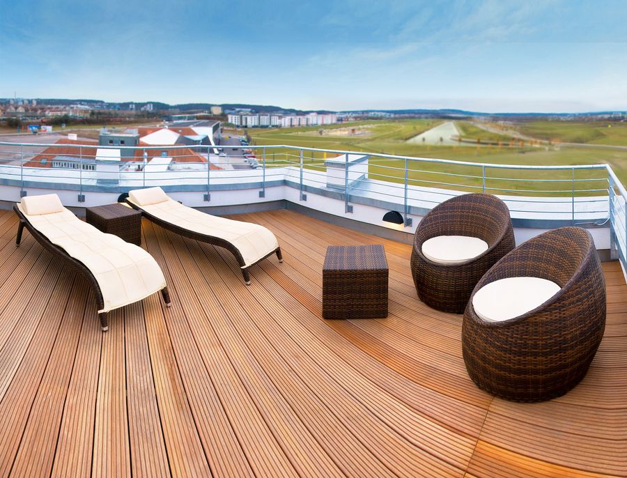 Die Terrasse lädt zum stilvollen Relaxen ein.