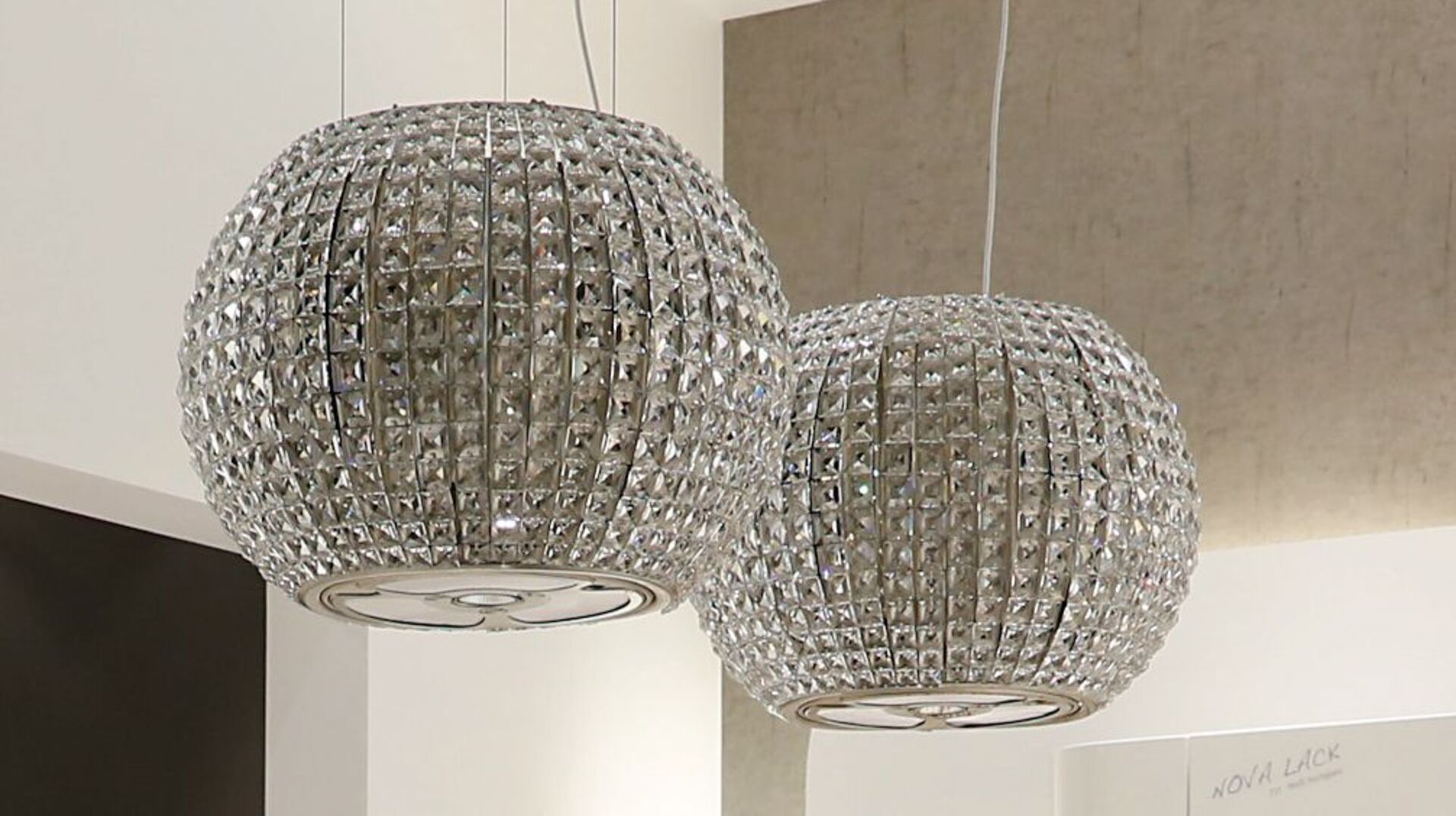 Sie dürfen in keiner Küche fehlen und sind häufig recht sperrig und nur auf Funktion bedacht – Abzugshauben. In puncto Design bei Umluft- oder Ablufthauben hat sich in den letzten Jahren aber einiges getan. Während sich die einen diskret hinter der Kochstelle ein- und ausfahren lassen, zeigen sich die anderen in originellem Design und sind daher bewusst dominant über Kücheninsel platziert – wie die funkelnde Abzugshaube im Kronleuchter-Style.