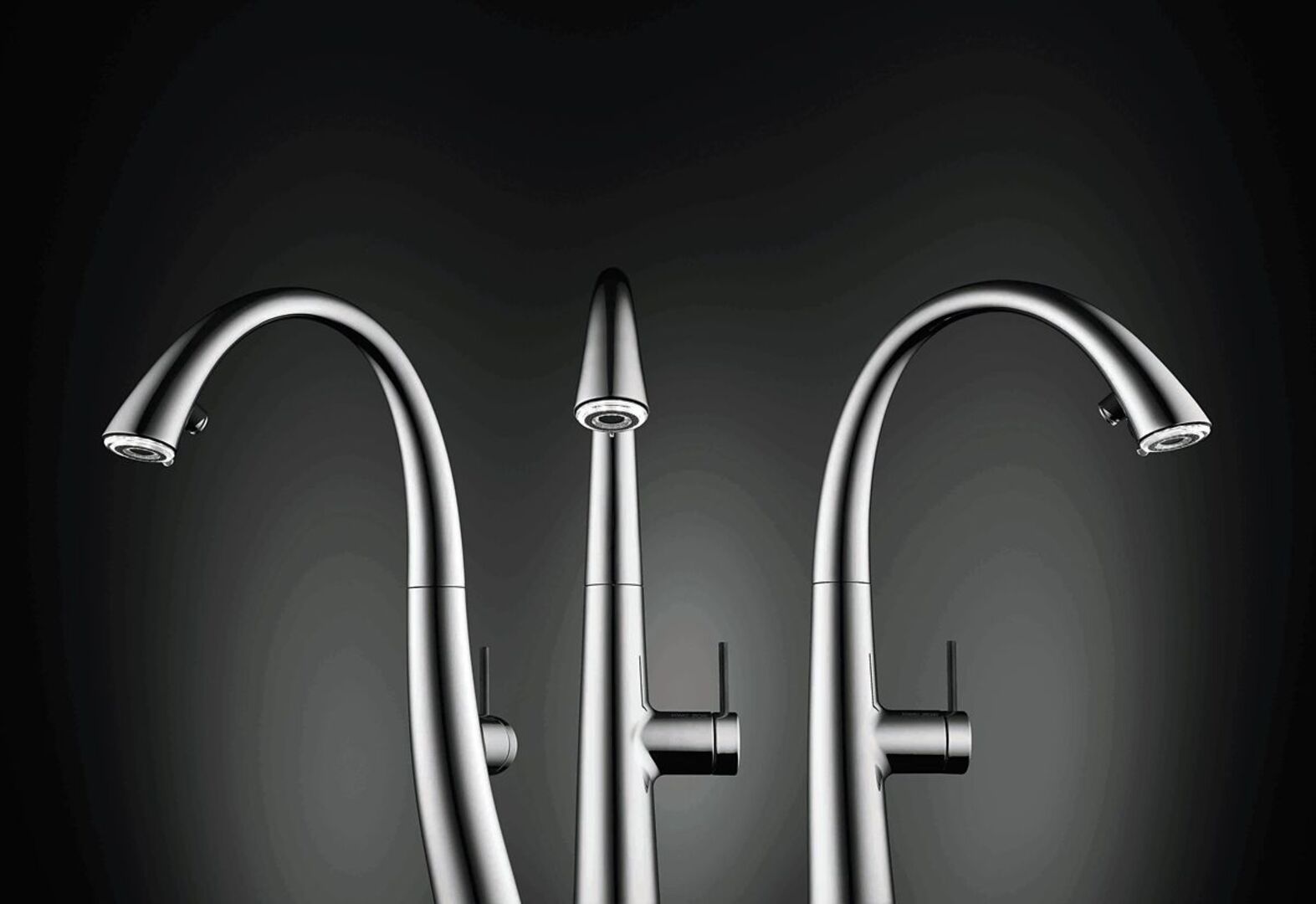 Ob geschwungen oder eckig, ob mit einfarbigem oder blau/rotem LED-Licht versehen – auch originelle Armaturen bringen einen individuellen Touch in die Küche. Neben der besonderen Optik darf natürlich auch Funktionalität nicht fehlen: Brauseaufsätze oder mehrere Gelenke machen den Wasserhahn flexibel und beweglich. Mit Armaturen, die kochend heißes Wasser fließen lassen, wird der Wasserkocher überflüssig.