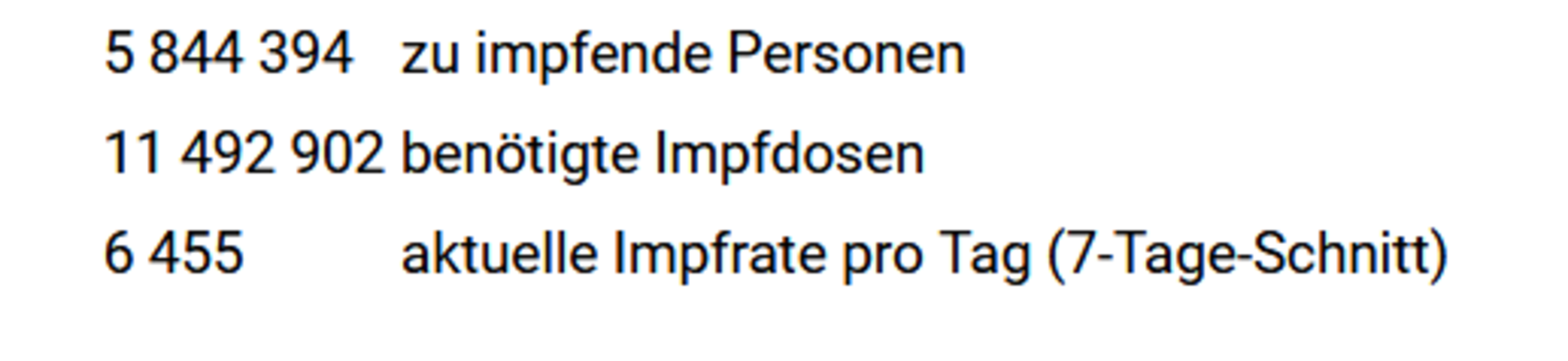 Die Daten hinter der Rechnung stammen aus dem Open-Data Projekt des Bundesministeriums für Digitalisierung. Verwendet wird der Datensatz "Zeitverlauf der COVID19-Impfungen in Österreich". Täglich fließen hier die Informationen des Impf-Dashboards des Gesundheitsministeriums ein. Es handelt sich also um offizielle und behördlich gesicherte Zahlen. Aktuell weiß man jedoch nur, wie viele Impfdosen ausgeliefert wurden, nicht aber wie viele tatsächlich auch verimpft werden. Das soll sich mit der Einführung des E-Impfasses ändern.