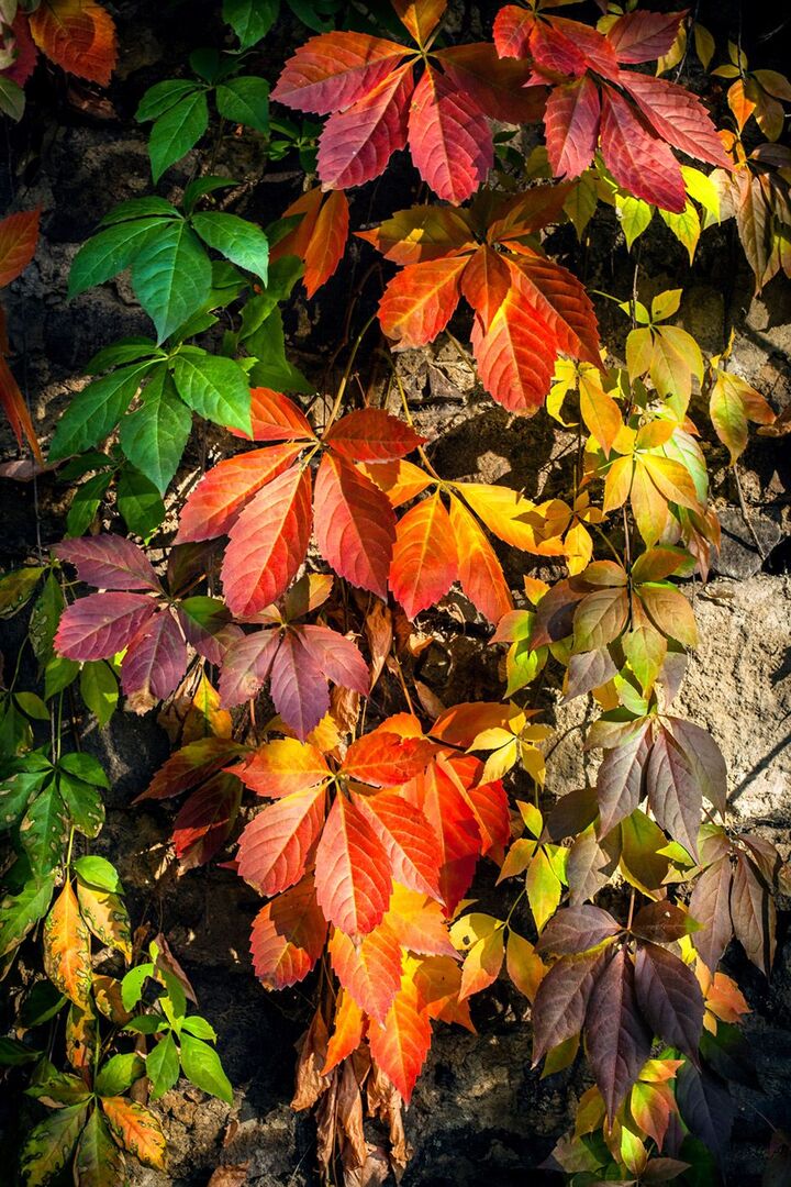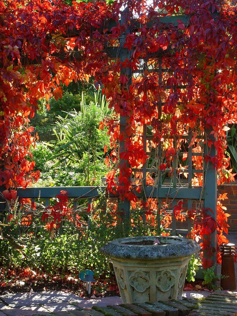 Wilder Wein verwandelt im Herbst den Garten in ein Farbenmeer