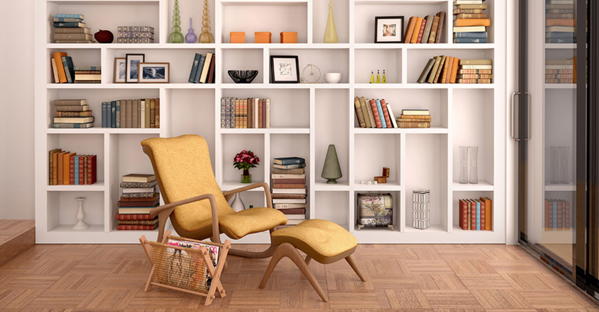 Ein voll gestelltes Bücherregal vermittelt Unruhe und steigert die Produktion des Stresshormons Cortisol. Um dieses unnötige Stressgefühl zu vermeiden, sollten Bücherregale nie ganz voll gestellt sein.