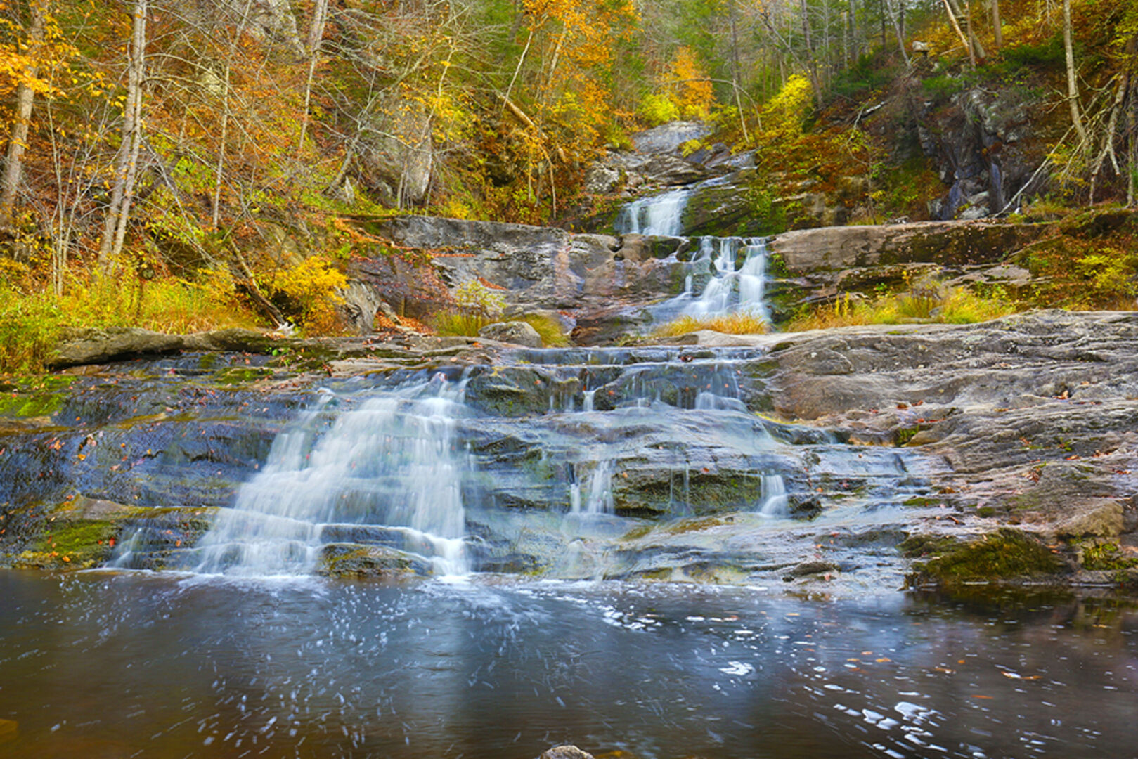 Der „Kent Falls State Park“ im US-Bundesstaat Connecticut beheimatet eine Reihe von Wasserfällen, die über 76 Meter auf einer Strecke von 400 Metern fließen…