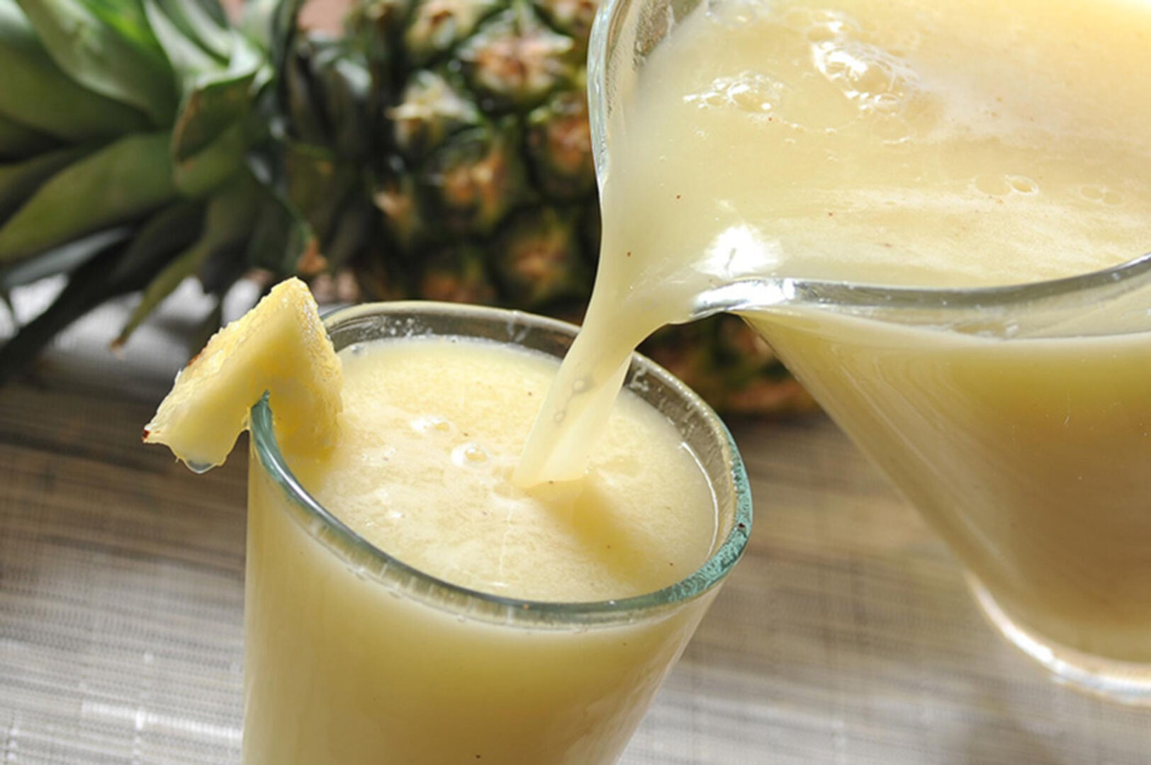 Joghurt, Kokosmilch, Ananas und Eiswürfel sind alle Zutaten, die Sie für diesen cremigen Smoothie brauchen. Einfach zusammenmischen, pürieren und genießen.