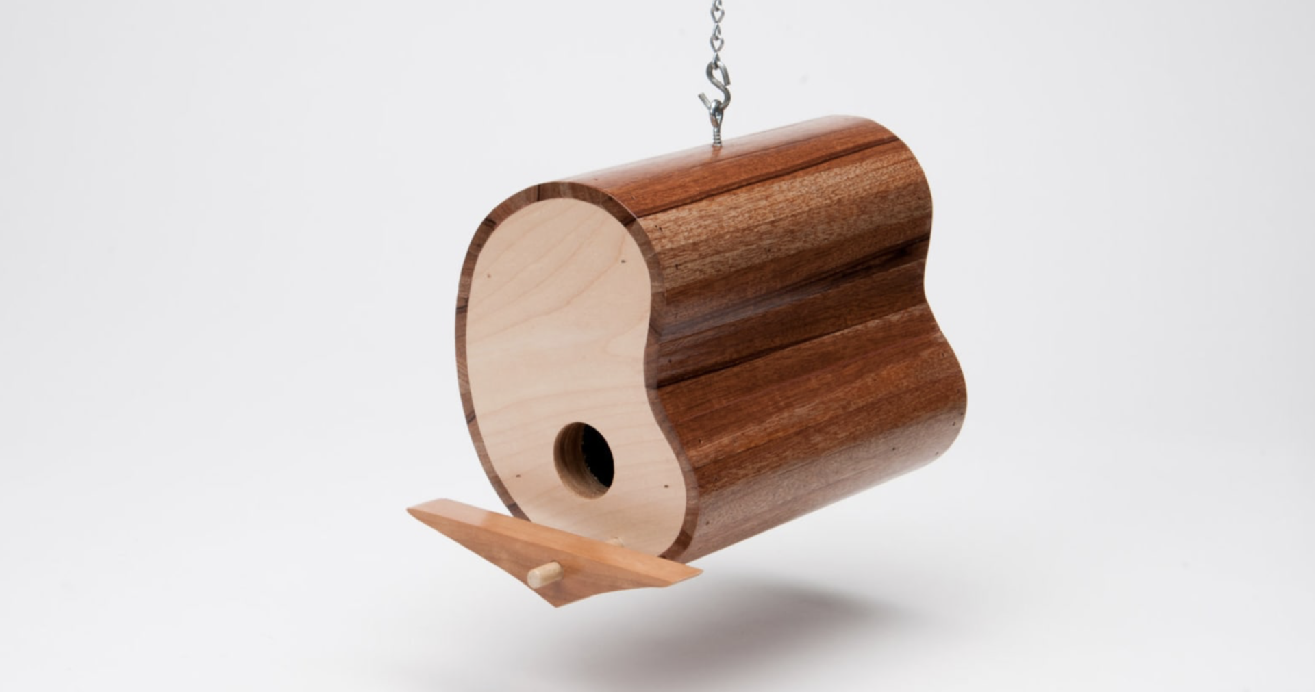 Der US-Amerikaner Mark Ellis fertigt aus tropischen Harthölzern und in Handarbeit formschöne Vogelhäuser, die er unter dem Label „Koolbird“ vertreibt. Bei dem verwendeten Holz handelt es sich ausschließlich um Materialreste von Parkettherstellern. Die Modelle „The Wave“ (ca EUR 170,–) oder das bohnenförmige Exemplar „The Bean“ (ca EUR 150,–) können über die unabhängige Online-Plattform „Etsy“ bestellt werden. www.koolbirdhouse.com