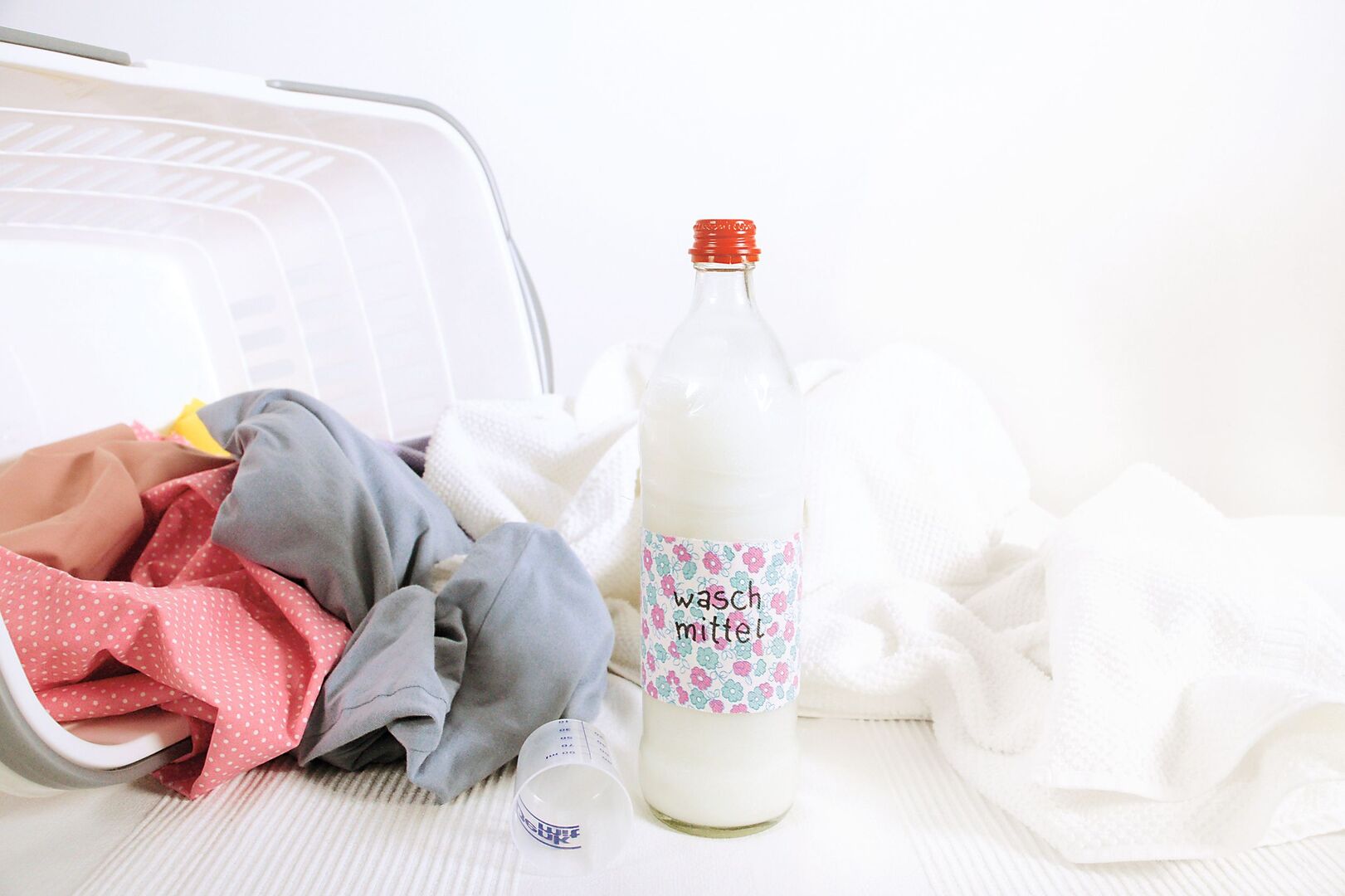 Alle Zutaten in einem Gefäß zusammenmischen und in eine Flasche abfüllen. Anwendung wie flüssiges Waschmittel. Menge: ca. 1 Liter. Info: Essigessenz kann noch einmal zusätzlich als Weichspüler hinzugegeben werden.