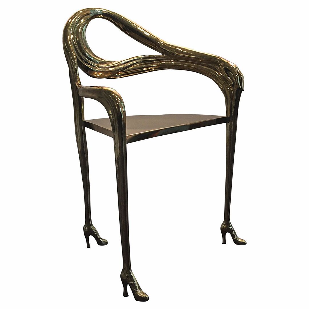 Der Meister des Surrealismus war ein umtriebiger Mensch. In seiner Welt zwischen Träumen und Realität hat Salvador Dalí das Unbewusste zum Leben erweckt und immer wieder mit Exzentrik überrascht. Es wundert also nicht, wenn seine schmelzenden Uhren haarnadelscharf an einen Bekanntheitsgrad von 100 Prozent herankommen. Natürlich ist man auch nicht erstaunt, wenn ein Stuhl, der seiner Fantasie entspringt, nur drei Beine – dafür allerdings mit edlem Schuhwerk bekleidet – und eine fließende Rückenlehne mit femininer Hand als eleganten Ausläufer vorzuweisen hat. Gemütliche Sessel mögen andere entwerfen. Der Mann mit dem unverwechselbaren Schnurrbart wurde zu Höherem geboren. Neben griffigen Zitaten, wie „Im Alter von sechs Jahren wollte ich Köchin werden. Mit sieben wollte ich Napoleon sein. Und mein Ehrgeiz ist stetig gewachsen“, soll er auch folgenden Ausspruch getätigt haben: „Ein Stuhl kann sogar dazu dienen, sich hinzusetzen, aber unter einer Bedingung: Dass wir unbequem sitzen.“ So begegnet man seinem Entwurf Leda aus dem Jahr 1935 – 1937 automatisch mit dem nötigen Respekt.