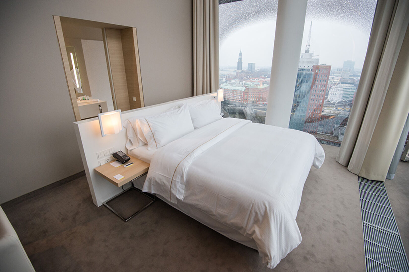 Der Ausblick der Zimmer reicht vom Hamburger Hafen über die Speicherstadt und die Alster. Wer im "Elphi"-Komplex übernachten will, muss mit Übernachtungspreisen zwischen 220 Euro für ein Standardzimmer und 1.100 Euro für eine Maisonette-Suite über zwei Ebenen rechnen. Die Zimmer sind auf zwölf Ebenen aufgeteilt und die Gäste des Hauses gelangen durch die Lobby im 8. Stockwerk direkt auf die öffentliche Plaza und in den Konzertsaal der Elbphilharmonie. Die nächste Reise nach Hamburg kommt also bestimmt.