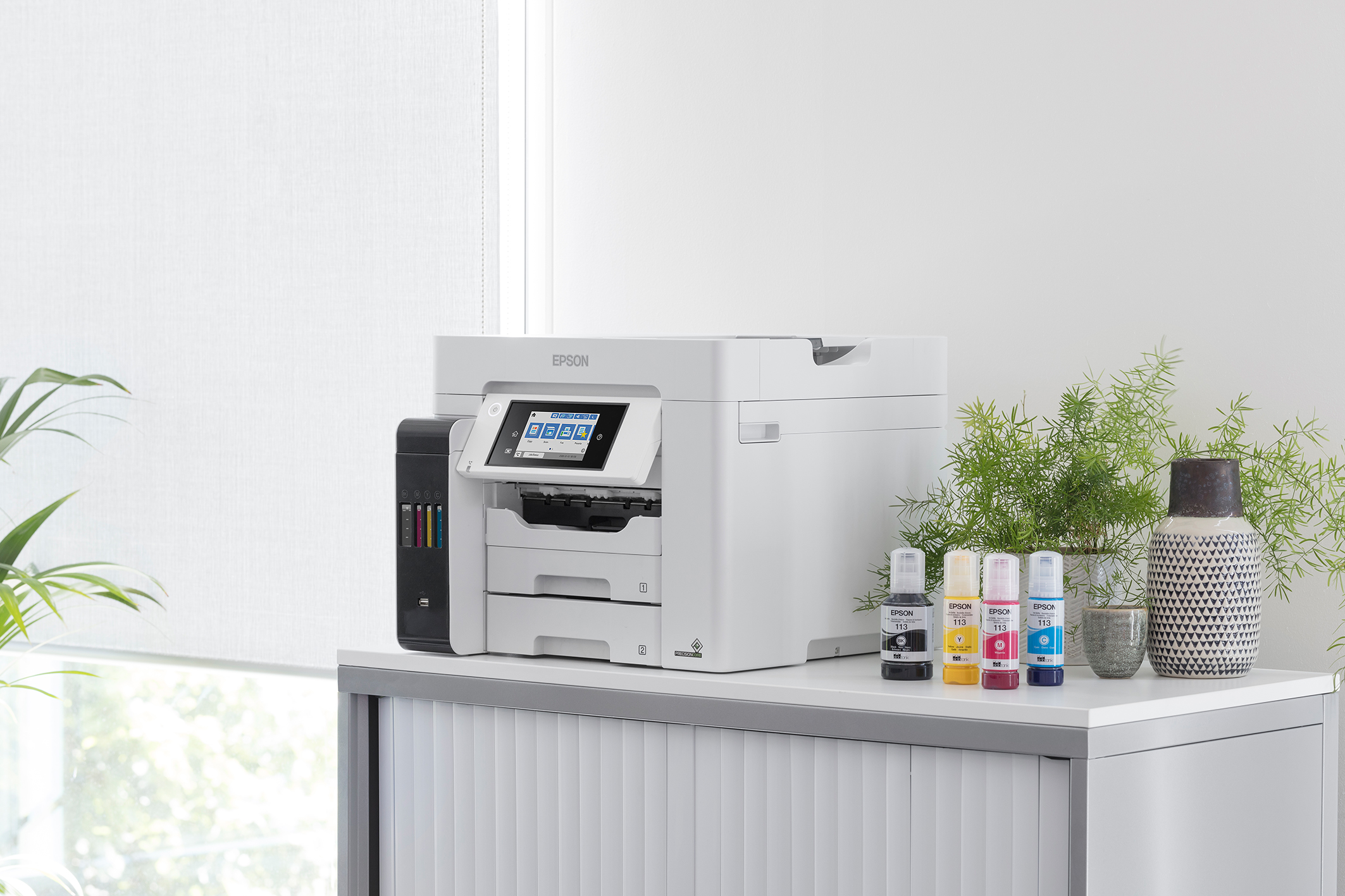 Die Eco-Tank Serie von Epson bietet günstiges Drucken mit Tintenstrahl, dank nachfüllbarer Tanks. Der ET-5880 ist das Flaggschiff fürs Home-Office. Erhältlich um rund 1.100 Euro inklusive Tinte für lange Zeit.