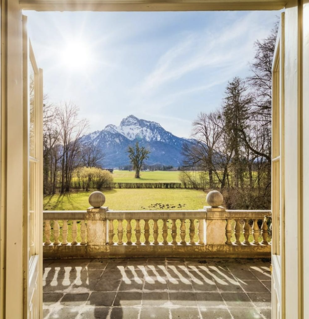 Wer lieber über Garten und Park schaut, kann den unverstellten Blick auf den Untersberg genießen.