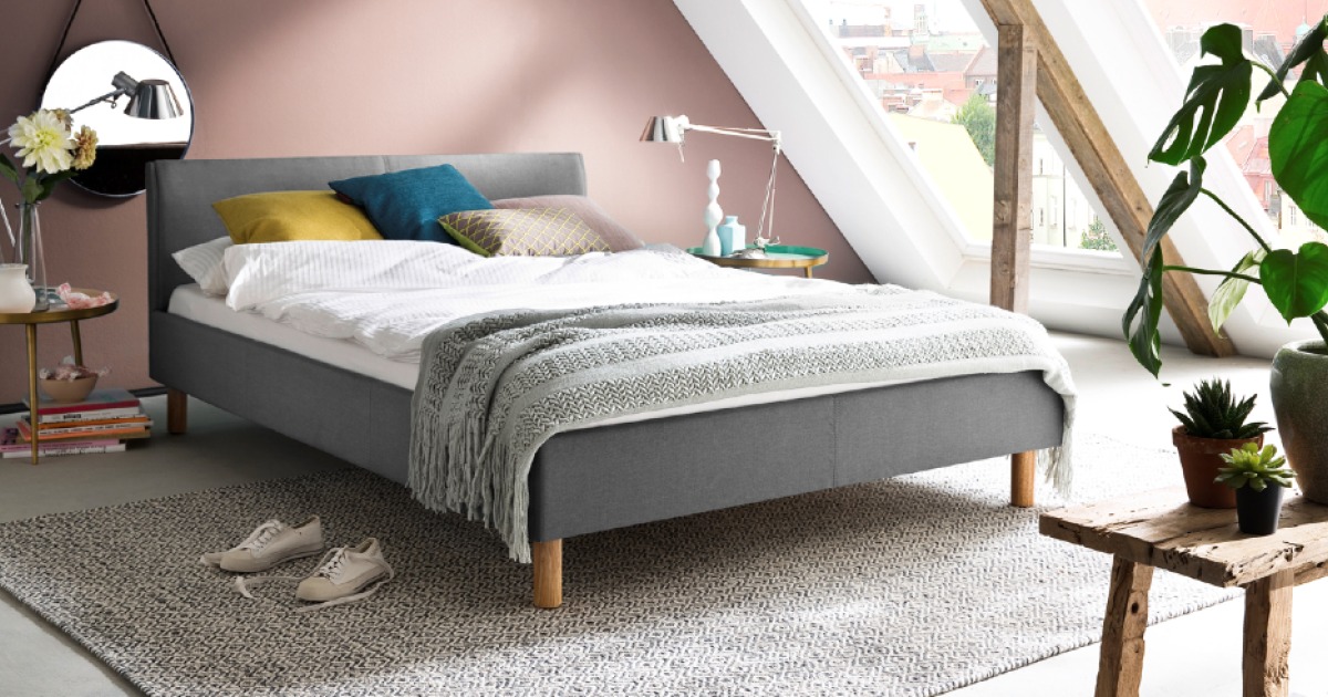 Den meisten Platz kann man in einem kleinen Schlafzimmer wohl beim Bett einsparen. Generell lautet die Devise dabei: kleine Betten für kleine Räume. Doch keine Sorge! Ein Queen-Size-Bett (1,40/1,60 x 2 Meter) ist für Pärchen völlig ausreichend. Achten Sie zudem darauf, dass die Matratze bündig mit dem Untergestell des Bettes abschließt, ansonsten kann der Bettrahmen unnötig viel Platz wegnehmen. Weiters macht es Sinn, sich mit wuchtigen Kopf- oder Fußteilen zurückzuhalten und das Bett an die Wand zu stellen. All das spart zusätzlich wertvolle Zentimeter.
