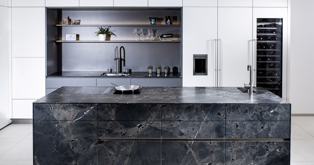 Natursteine wie Marmor, Granit, Schiefer oder Beton sind dank ihrer Individualität und Robustheit ebenfalls gern gesehen im Küchenpalast. Sie erfreuen sich nicht nur bei Arbeitsplatten großer Beliebtheit, sondern kommen auch vermehrt bei Küchenfronten zum Einsatz. Im Trend liegt Naturstein aber auch beim Interior Design. Villeroy & Boch bringt mit seiner neuen Kollektion etwa Granitoptik auf den gedeckten Tisch.
