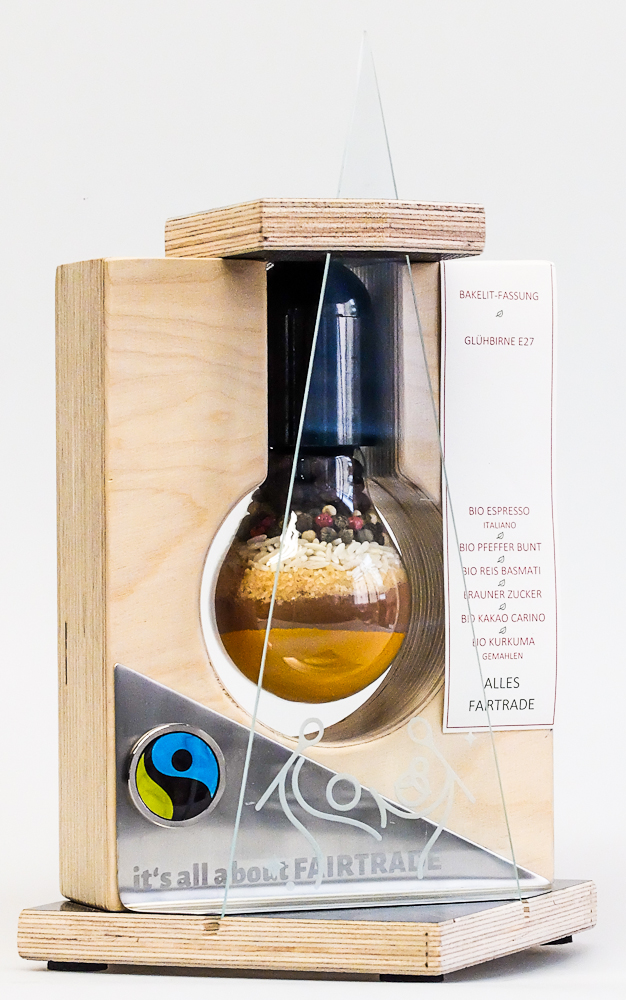 Auch Pokale werden angefertigt – hier passend zum Thema auch mit Fairtrade-Produkten gefüllt.