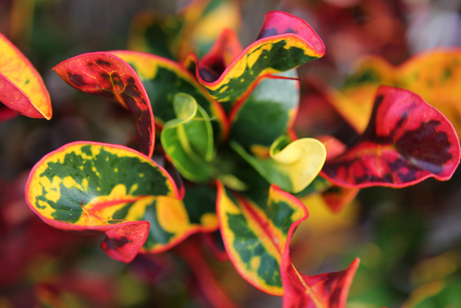 Kroton ist auch unter dem Namen Wunderstrauch oder Krebsblume bekannt. Bei Morgen- und Abendsonne gedeiht der Kroton besonders gut und bereitet Kindern mit den farbenfrohen Blättern besonders viel Freude.