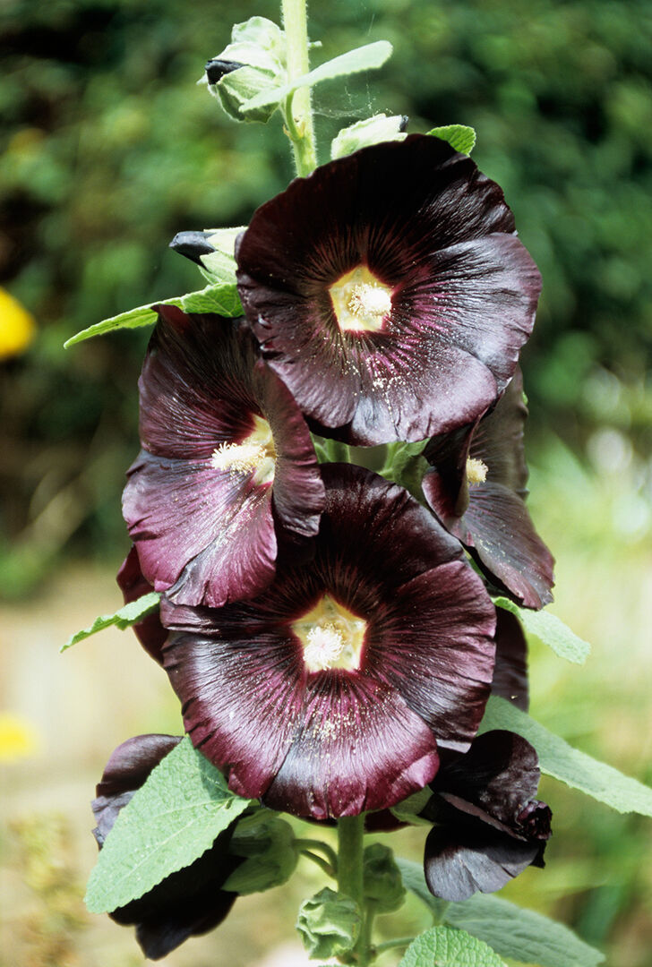 Bis zu 2,2 Meter hoch werden Stockrosen, wenn sie richtig gepflegt werden. Am besten gedeihen sie an einer sonnigen Hauswand, da diese Wärme und Schutz vor Wind bietet. Die schwarzen Blüten der Stockrosen sind bei den hoch-wachsenden Blumen ein ganz besonderer Blickfang.
