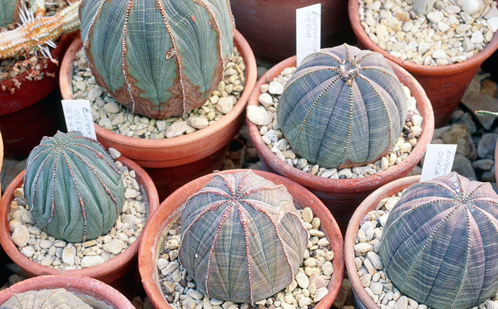 Euphorbia obesa heißt dieser Kaktus, der die Form eines Basketballs hat und besonders toll in Badezimmer passt.