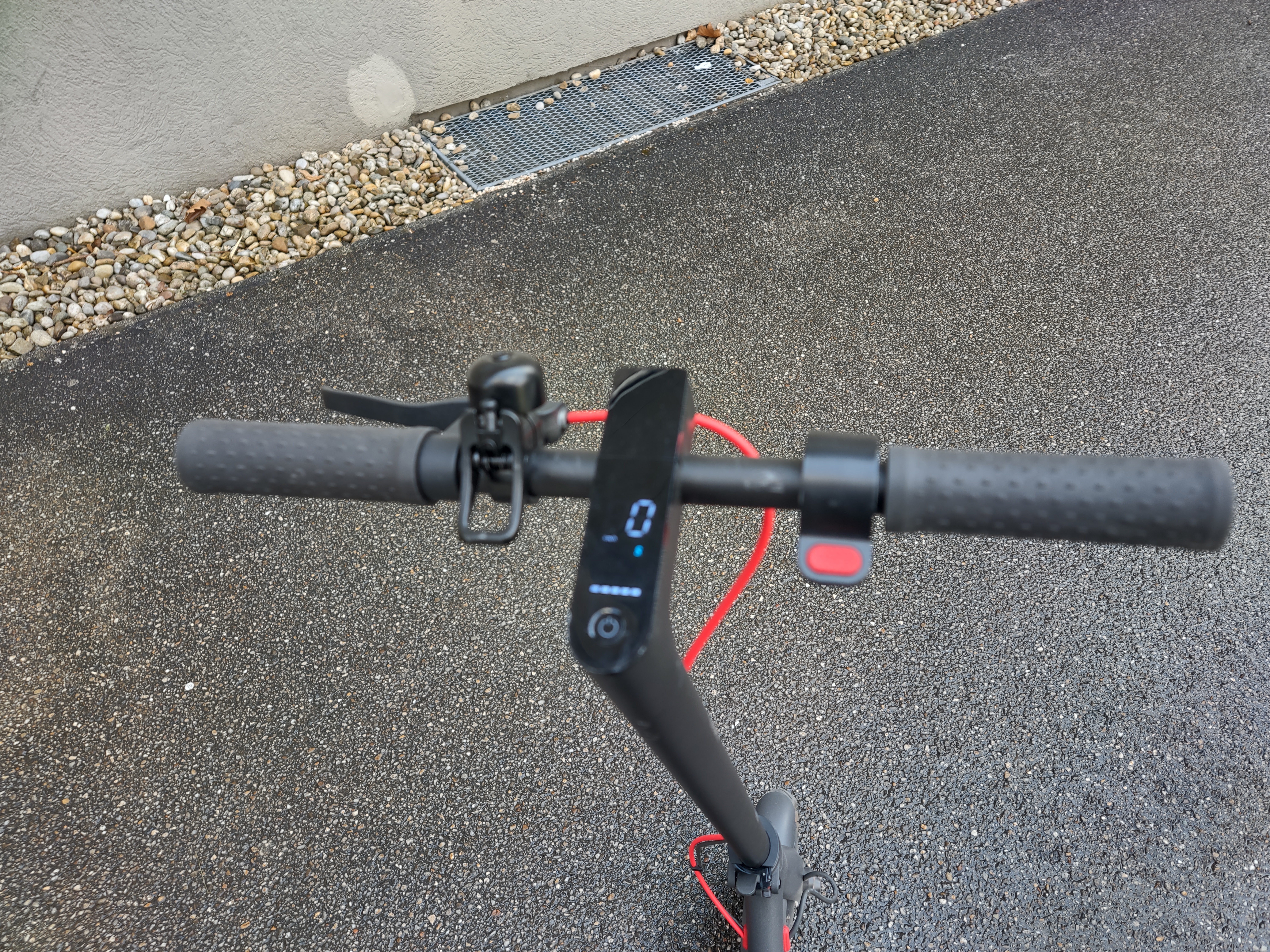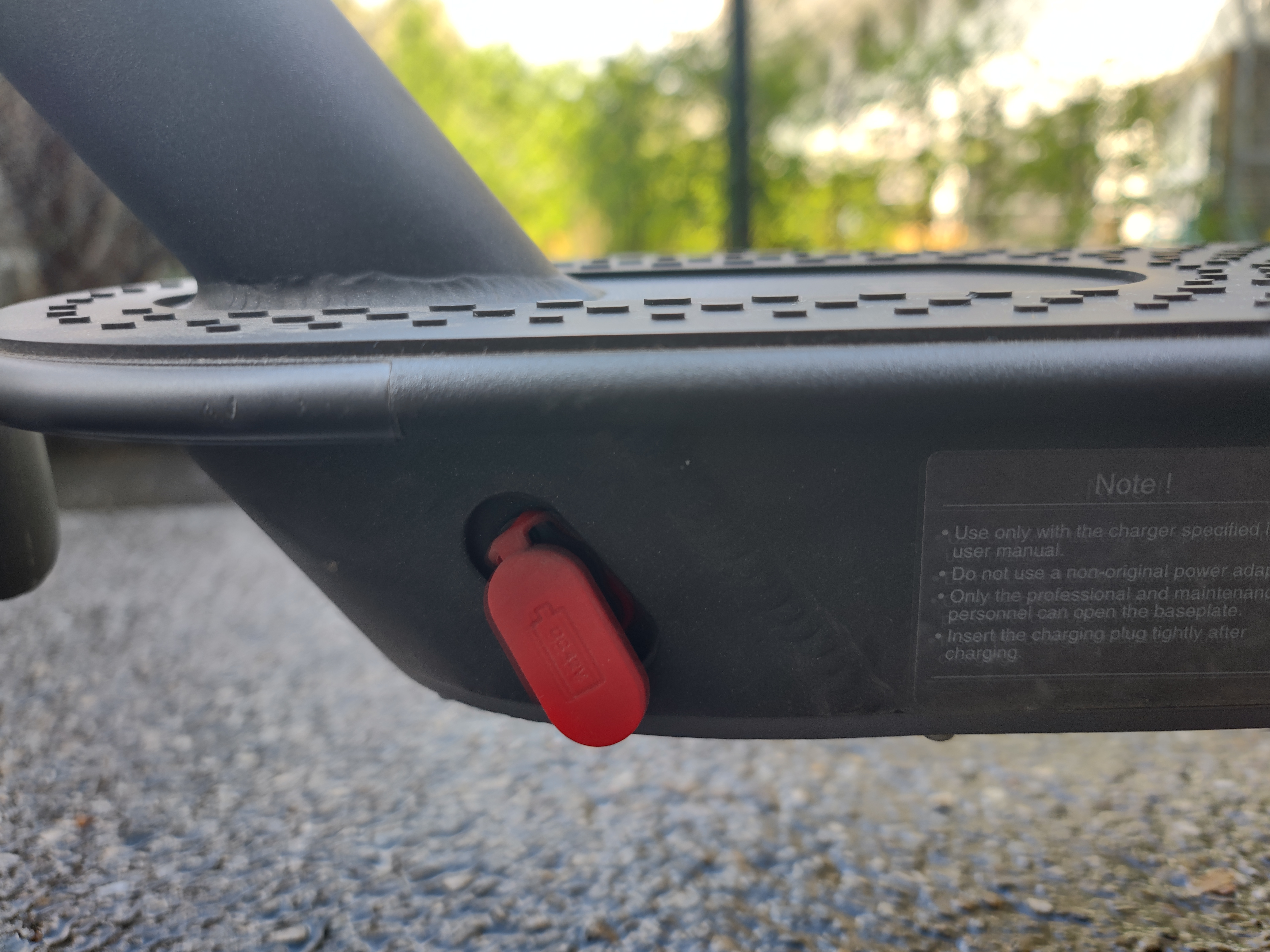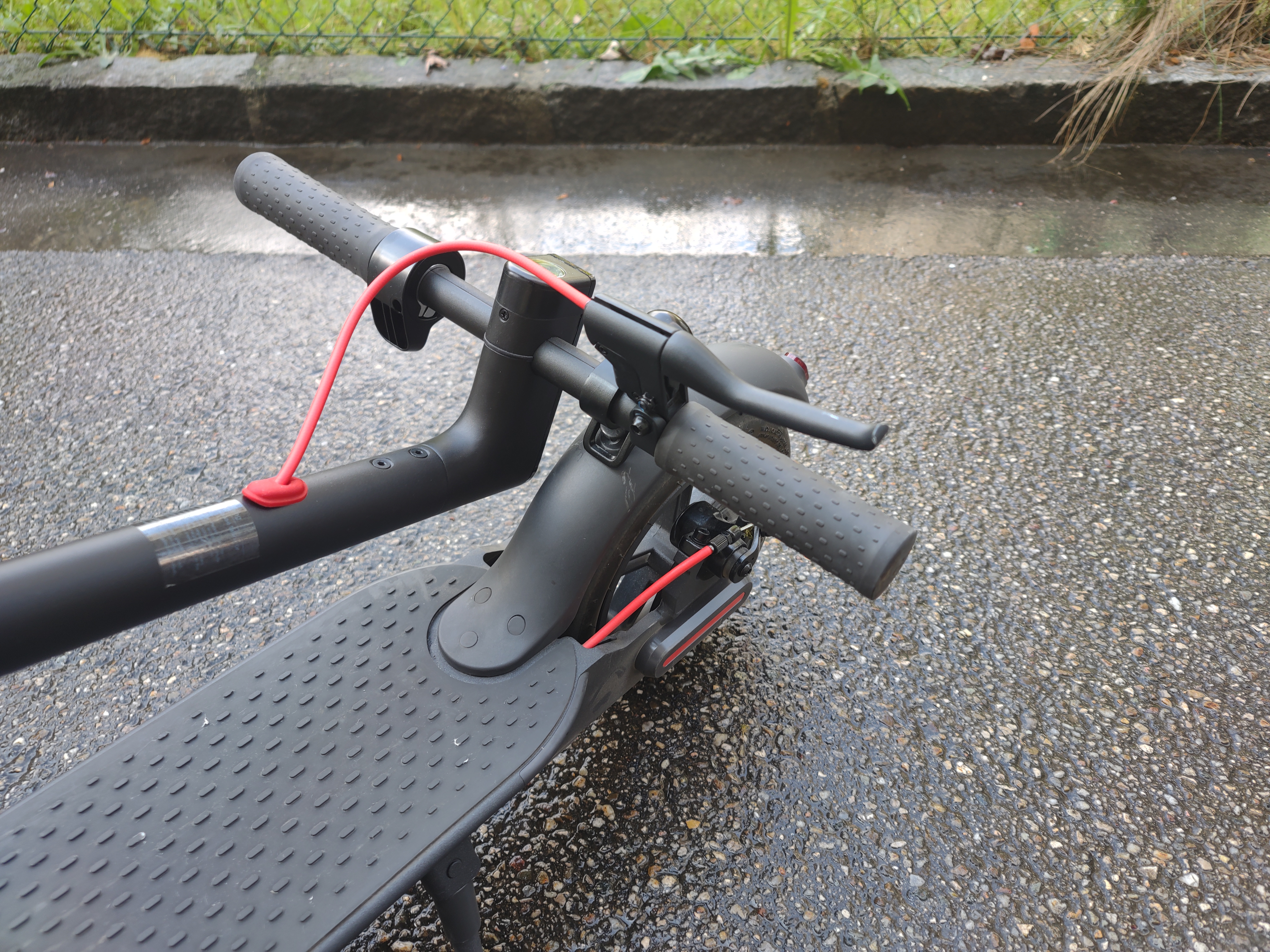 Die Handhabung hat Xiaomi so einfach wie möglich gestaltet. Ein Display an der Lenkstange zeigt Akkuladestand, Geschwindigkeit, Fahrmodus und Licht an. Bedient wird der Scooter über einen Druckknopf. Langes drücken aktiviert das Licht und andere Fahrmodi. Ganz langes drücken schaltet den Scooter wieder aus. Der Ladeport befindet sich auf der Unterseite, direkt bei der Batterie. Den zu erreichen ist etwas schwierig, er wird durch Plastik vor Wasser und Staub geschützt. Den Scooter zusammenzuklappen ist kinderleicht. Einfach den Spanner lösen und die Lenkstange nach hinten klappen. Dort gibt es eine kleine Arretierung, damit sich der Scooter leichter tragen lässt. Sitzt passt und hat Luft.