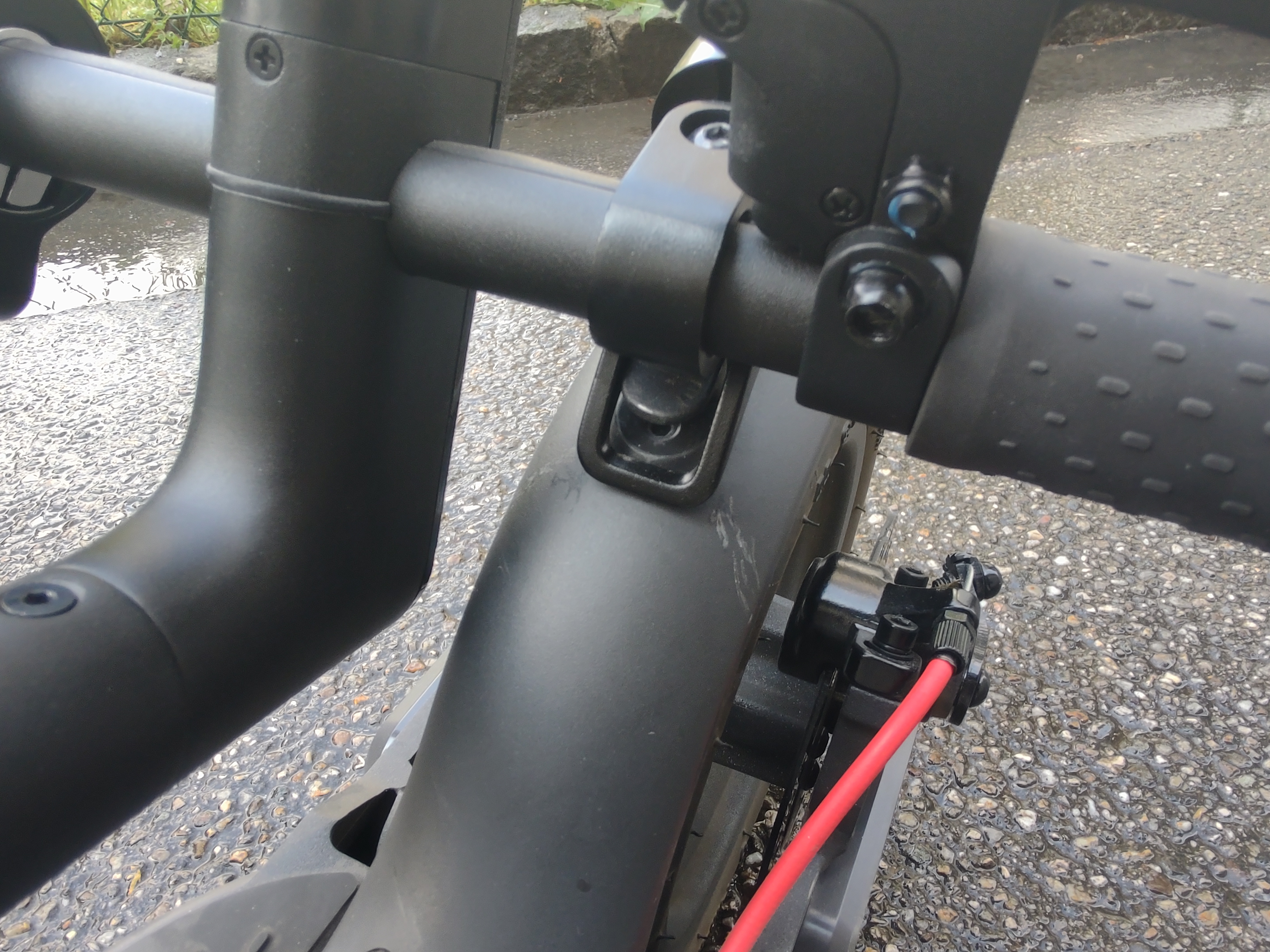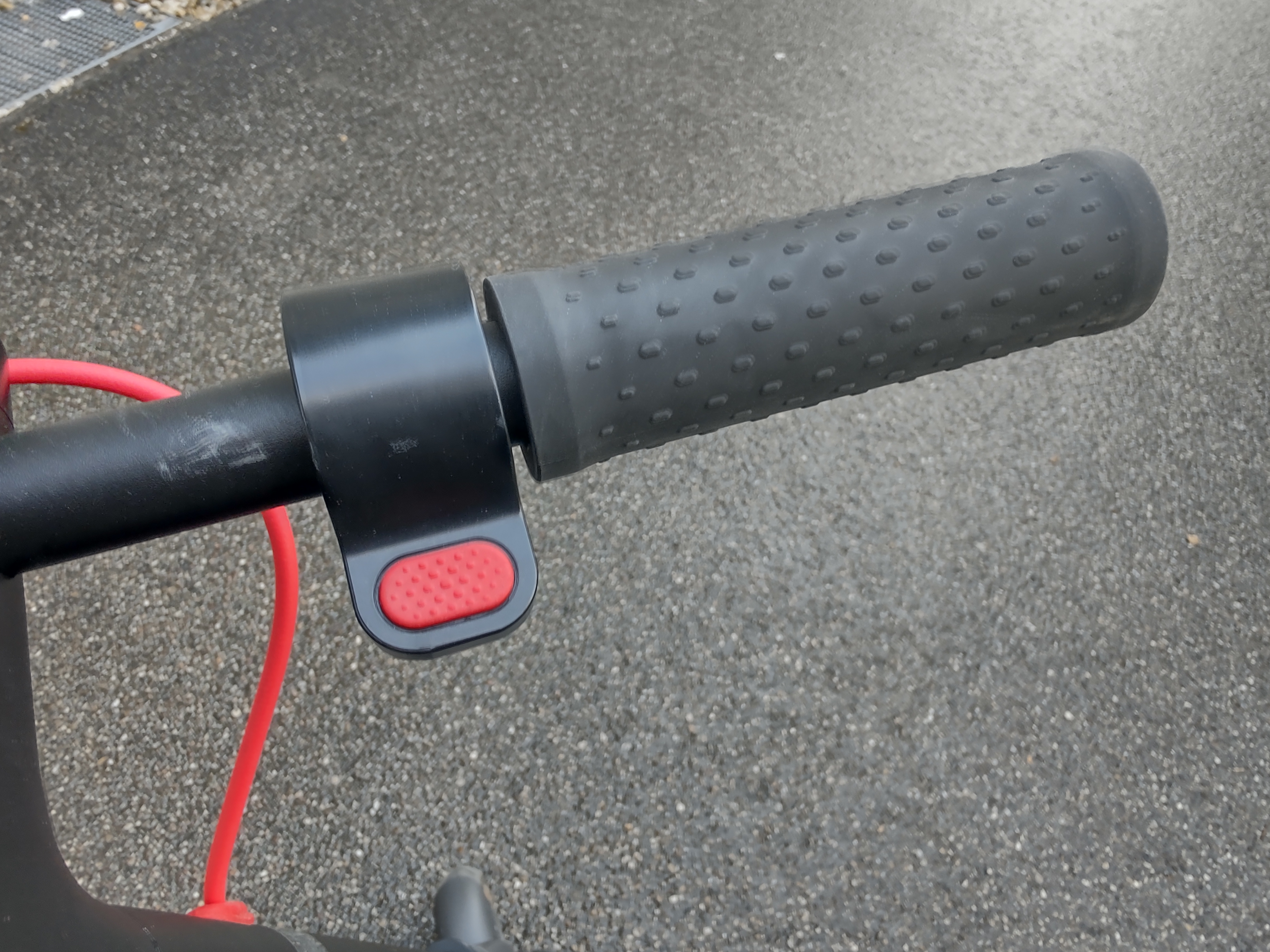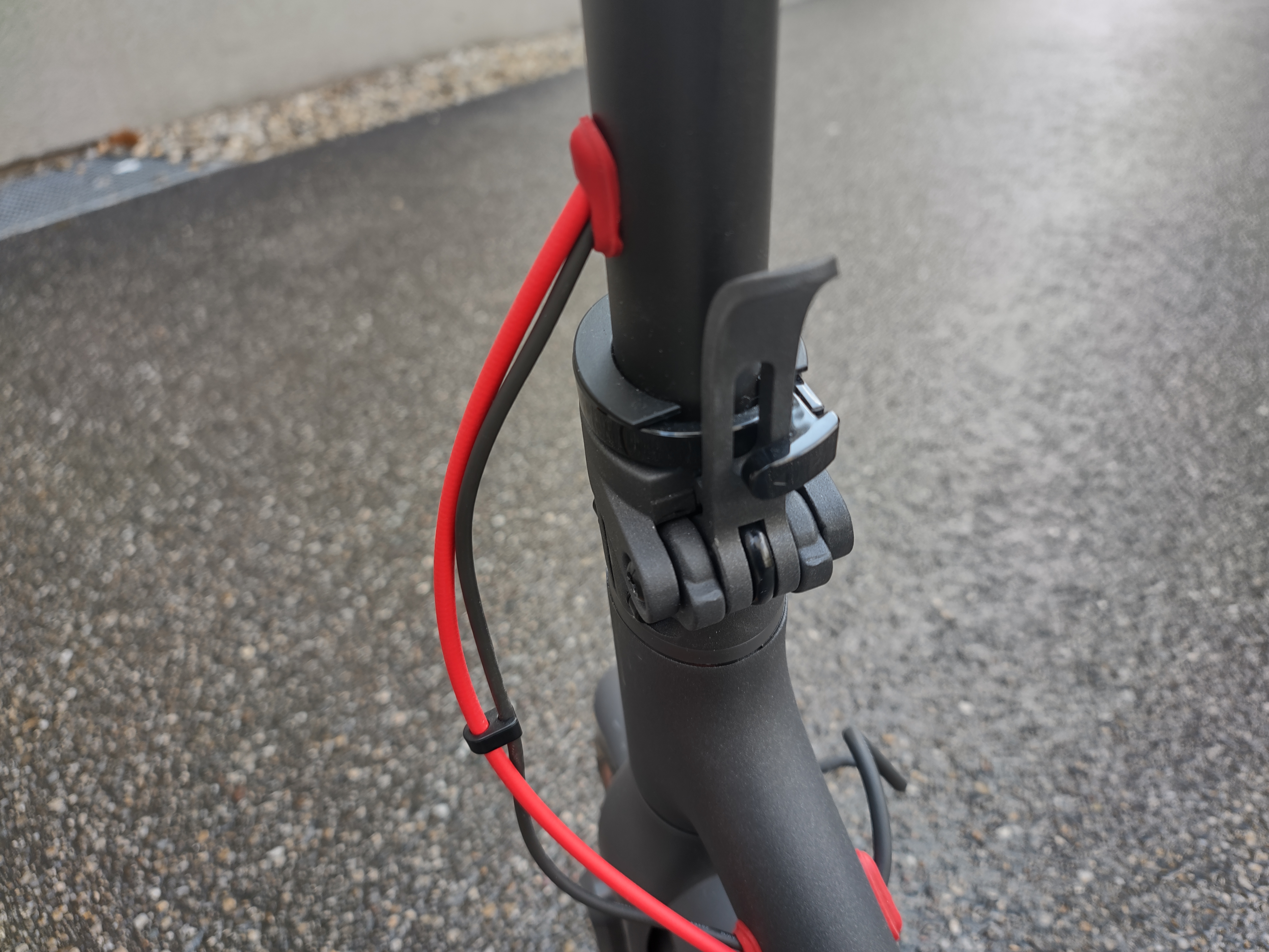Die Handhabung hat Xiaomi so einfach wie möglich gestaltet. Ein Display an der Lenkstange zeigt Akkuladestand, Geschwindigkeit, Fahrmodus und Licht an. Bedient wird der Scooter über einen Druckknopf. Langes drücken aktiviert das Licht und andere Fahrmodi. Ganz langes drücken schaltet den Scooter wieder aus. Der Ladeport befindet sich auf der Unterseite, direkt bei der Batterie. Den zu erreichen ist etwas schwierig, er wird durch Plastik vor Wasser und Staub geschützt. Den Scooter zusammenzuklappen ist kinderleicht. Einfach den Spanner lösen und die Lenkstange nach hinten klappen. Dort gibt es eine kleine Arretierung, damit sich der Scooter leichter tragen lässt. Sitzt passt und hat Luft.