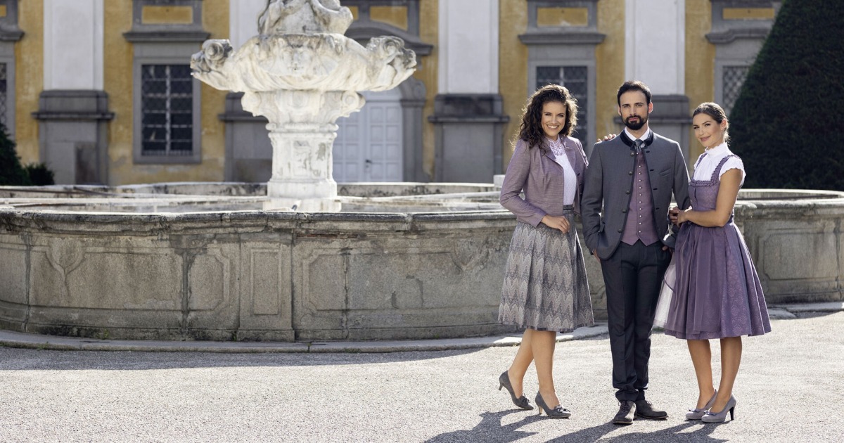 Elegante Outfits für den Herbst mit Rock-Kombination von Lena Hoschek sowie Brokat-Dirndl mit Jersey-Spitzenbluse und der Hahn im Korb ist farblich abgestimmt.