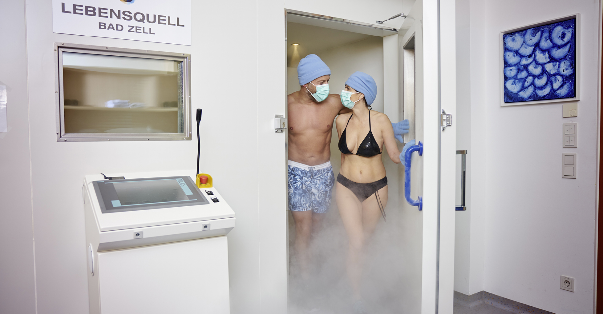 Die positiven Effekte, die Kälte auf den Organismus hat, nutzt man in der Medizin auch mithilfe von Kältekammern, die eine – im Gegensatz zum Eisbaden – trockene Kälte bis minus 110 Grad Celsius nutzen. Seit 2004 bietet etwa das Gesundheitsresort Lebensquell Bad Zell eine Ganzkörper-Kältetherapiekammer an. Die Anwendung erfolgt in einem Zweikammersystem: Nach einem kurzen Aufenthalt in der Vorkammer bei minus 60 Grad Celsius betritt der Gast die Hauptkammer mit einer Temperatur von minus 110 Grad Celsius. Dieser Kältereiz lindert Schmerzen, hemmt entzündliche Prozesse und kann das Immunsystem positiv beeinflussen. Schmerzhafte Gelenke sollen durch den Kältereiz mobiler werden, die gelenksnahe Muskulatur kann besser aktiviert und degenerative Prozesse können verlangsamt werden.