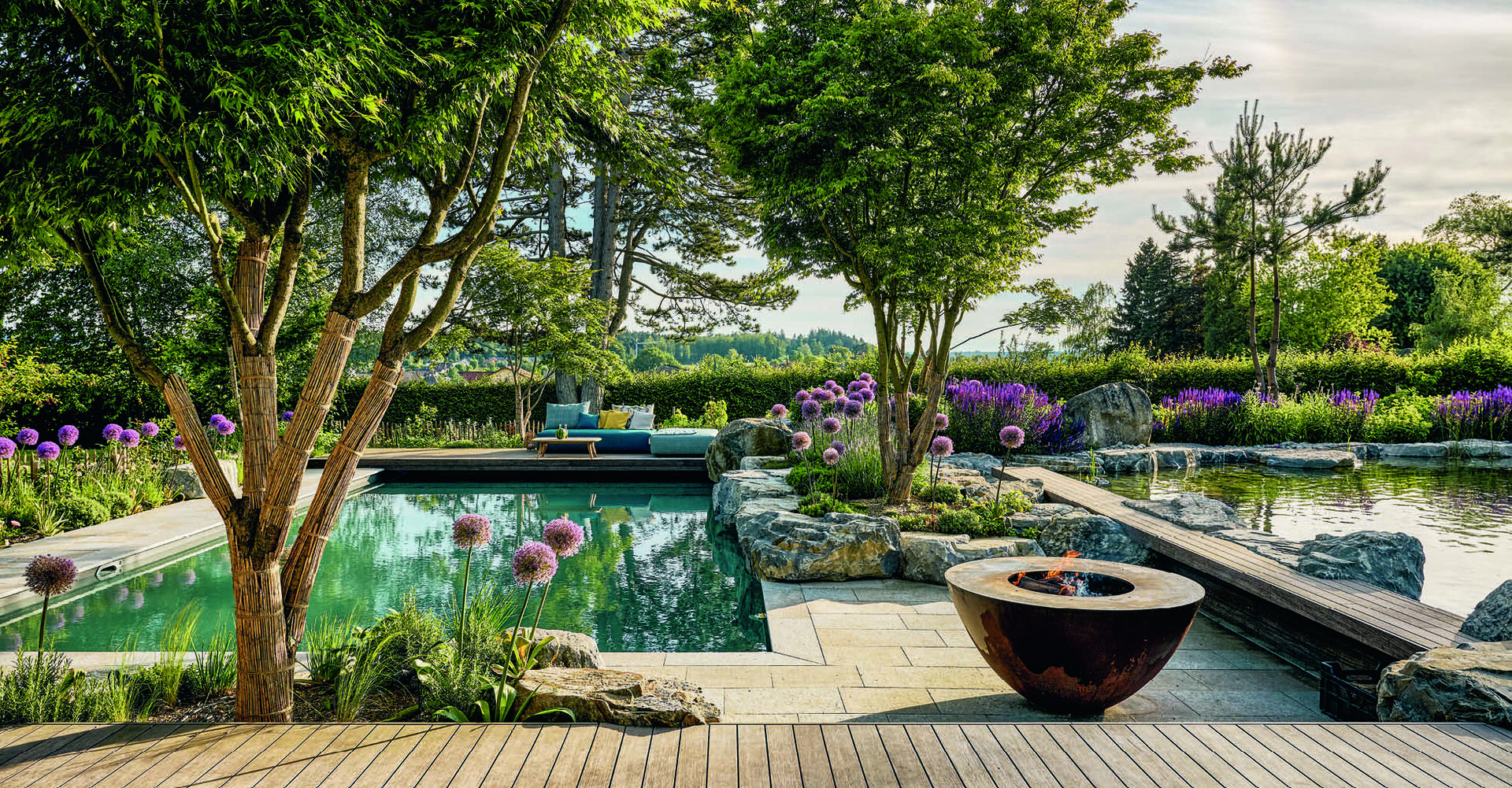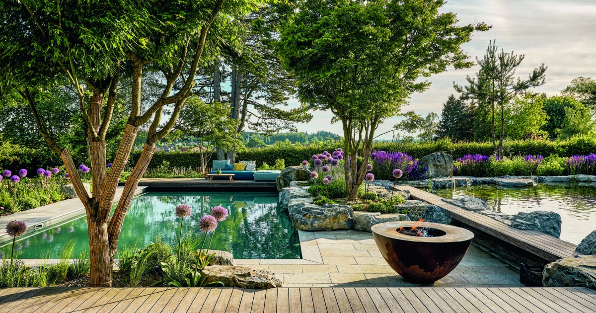 Betrachtet man die Gärten des Bildbandes springt die Nähe zur Natur sofort ins Auge. Bäume, Sträucher und Dickichte sind kein Sakrileg. Und dennoch ist es eine Gratwanderung zwischen unbändiger Natur und penibler Inszenierung, welche die Gartengestalter meistern müssen. Ökologie und Ordnung werden geschickt ausbalanciert, um den Garten zu einer wahren Oase zu machen. Auffallend ist auch der Hang zu Wasserelementen. Naturpools und kleine Teiche vermitteln ein Gefühl von Natürlichkeit. Aber auch konventionelle Pools können sich bei einer geschickten Gartengestaltung in das Gesamtbild einfügen. Kleine Wasserfälle sprechen nicht nur das Auge an, sondern schaffen auch eine beruhigende Geräuschkulisse. Ein Garten ist mehr als nur ein gestaltetes Stück Land – er ist Ausdruck von Individualität, Sehnsucht und Naturverbundenheit. Die in „Gärten des Jahres 2025“ prämierten Rückzugsorte zeigen eindrucksvoll, wie die Balance zwischen Kreativität und ökologischem Bewusstsein unsere grünen Oasen zu wahren Kunstwerken macht.
