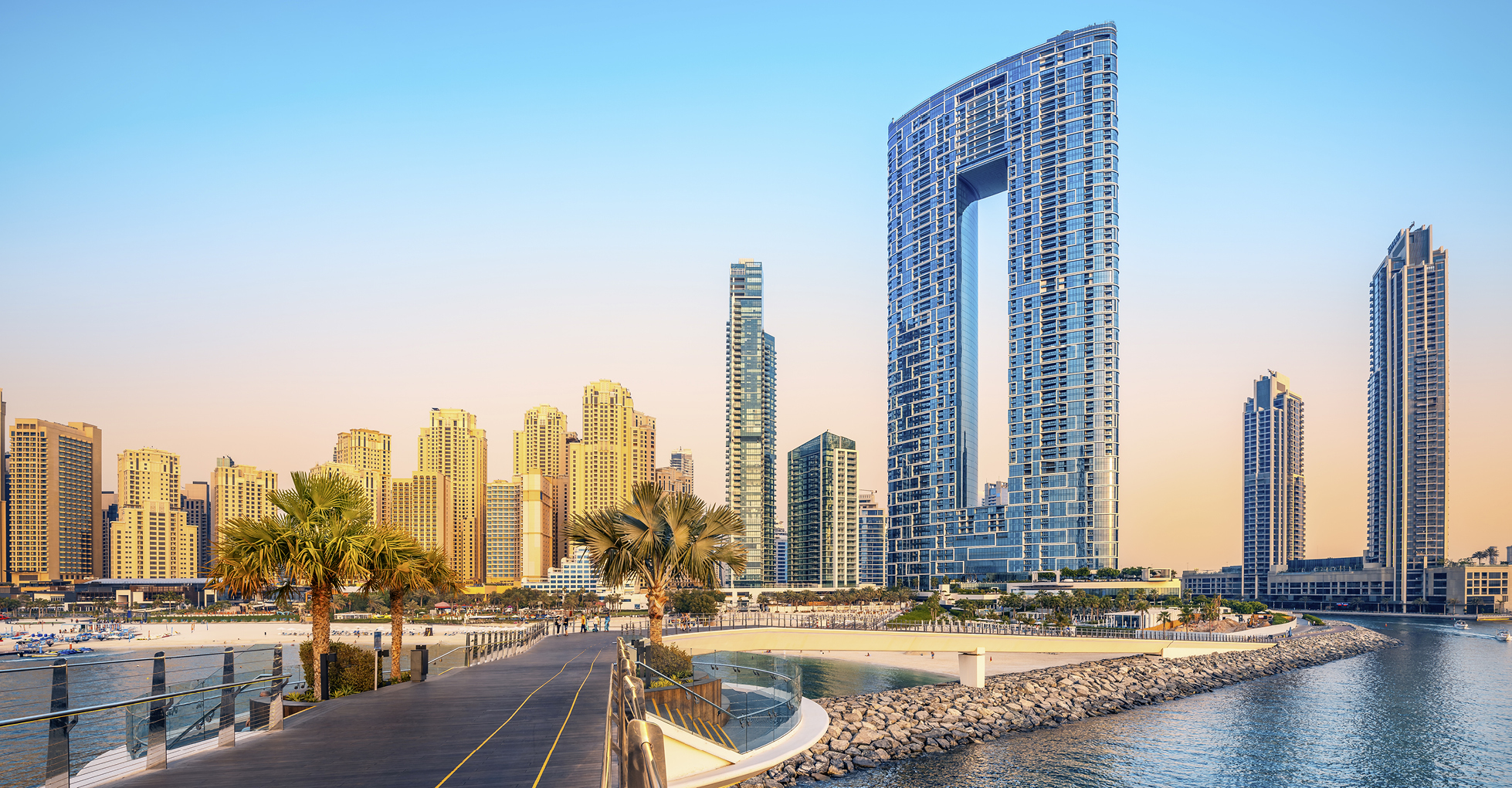 Wer noch nicht in Dubai war, kennt den berühmten Küstenstreifen zumindest von den Motiven der Sehnsuchtsbilder, die Millionen Touristen jährlich in die Wüstenmetropole locken: Strandbesucher, die den Sonnenuntergang über dem Arabischen Golf genießen und Selfies mit dem Burj Al Arab im Hintergrund schießen. Dubais Wahrzeichen ist das einzige 7-Sterne-Hotel der Welt. Und es ist nur eine von vielen Superlativen der Region.