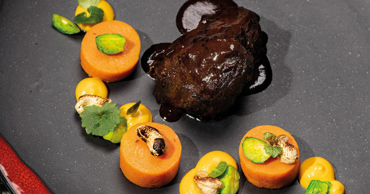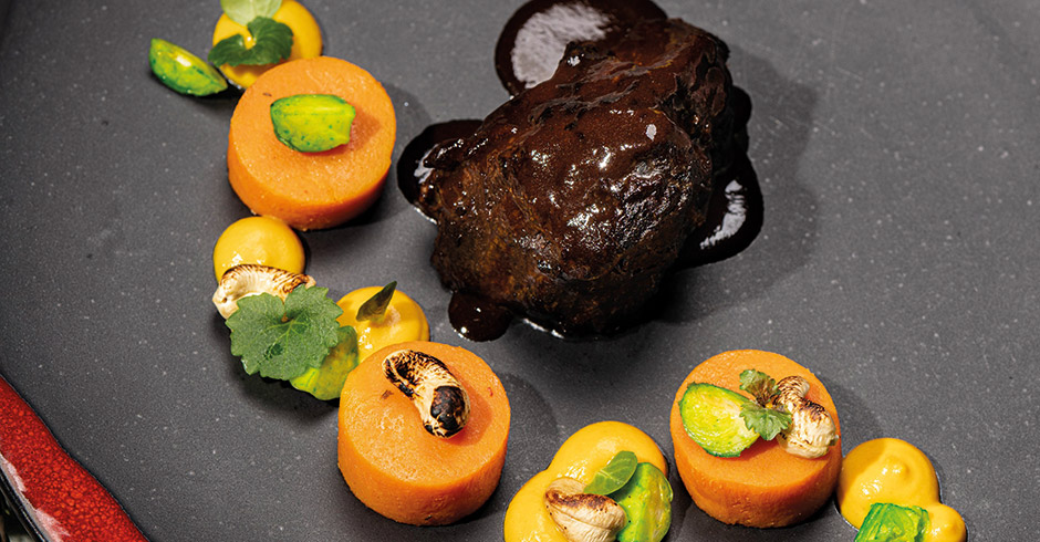 1. Weich gekochte Kerbelknollen auf der Anschnittstelle in Olivenöl anbraten. 2. Räuchertofu teilen und ebenfalls anbraten. 3. Für die Mais-Creme den gekochten Mais mit Bourbon-Whiskey, Salz und Pfeffer passieren. 4. Für die Tofu-Creme die Paranüsse im Mixbehälter pürieren. Tofu mit Küchenkrepp abtrocknen, grob würfeln und mit dem Soja- oder Reisdrink im Mixbehälter pürieren. 5. Knoblauchzehen schälen, halbieren, das Grüne entfernen und zusammen mit Basilikum, Weißweinessig und Rohrzucker ebenfalls im Mixbehälter pürieren. 6. Mit Salz, Pfeffer und Paprika abschmecken. Eventuell noch etwas Chilipulver hinzufügen – je nach Gusto. 7. Für die Manchego-Creme Butter in einem kleinen Topf erhitzen, bis sie leicht bräunt und nussig zu duften beginnt. 8. Dashi erwärmen und anschließend sofort mit der Miso-Paste und den Eiern in einem hohen Gefäß mit dem Stabmixer pürieren. 9. Dann Nussbutter und Crème fraîche untermixen und mit geriebenem Manchego-Käse und etwas Pfeffer abschmecken.
