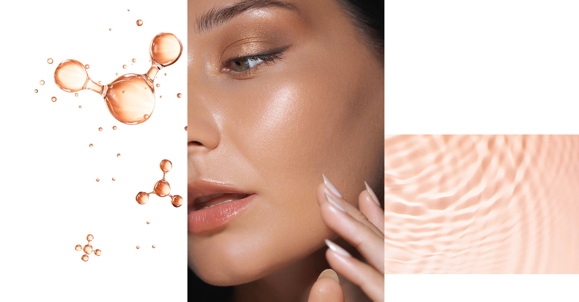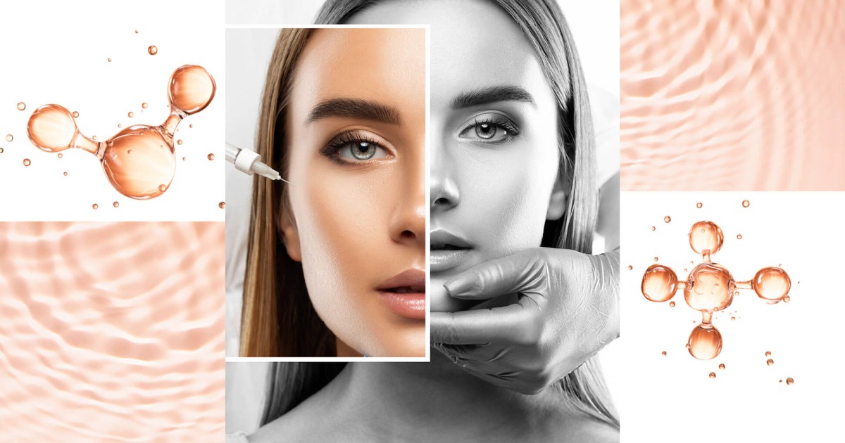 Haut, die von innen leuchtet – und so beinahe jeden Highlighter überflüssig macht. Sie basieren auf Hyaluronsäure, unterscheiden sich aber grundlegend von klassischen Fillern durch ihre Vernetzungsstruktur und Konsistenz. Unvernetzte Hyaluronsäure ist dünnflüssig, verteilt sich gleichmäßig in der Dermis und bindet dort Wassermoleküle – bis zu 1.000-mal des eigenen Gewichts.