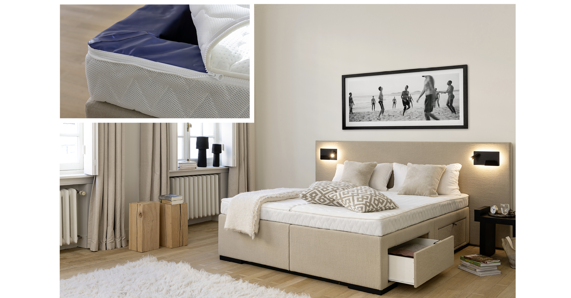 Obwohl Wasserbetten seit Jahrzehnten auf dem Markt sind, ergeben sich manchmal noch weitere Vorurteile wie „Kann das Wasser auslaufen?“ oder „Ist die Heizung gefährlich bzw. braucht sie nicht Unmengen an Strom?“. Die Realität sieht da weit entspannter aus, denn moderne Wasserbetten erfüllen höchste Sicherheitsstandards, also kann hier Entwarnung gegeben werden. Die Wassermatratze liegt in einer Schutzwanne und diese fängt das Wasser bei einem eventuellen Schaden auf. Unterhalb dieser Schutzwanne befindet sich das Heizsystem. Das heißt, die Heizung kann mit dem Wasser nicht in Berührung kommen. Elektrisch und thermisch bleibt also alles sauber isoliert – ein Risiko ist praktisch ausgeschlossen. Die optimale Temperatur für den Körper und die Seele liegt zwischen 27 und 30 Grad je nach Jahreszeit. Laut Fürstelberger sind die Stromkosten dennoch kein Problem: „Beim Stromverbrauch zeigt sich, dass zahlreiche Sorgen unbegründet sind. Unter normalen Bedingungen – also bei regulärer Nutzung und einer üblichen Einstellung der Heiztemperatur – belaufen sich die Kosten auf etwa 40 bis 50 Euro im Jahr.“ Damit liegen die Stromkosten oft niedriger als erwartet und teilweise sogar im Bereich moderner Haushaltsgeräte wie Router oder kleiner Stand-by-Verbraucher. Entscheidend ist dabei die hochwertige Isolierung, die zum einen verhindert, dass Wärme unkontrolliert entweicht und zum anderen nur minimale Nachheizphasen erfordert. Und wer sich dennoch Gedanken macht, findet unkomplizierte Lösungen. Stehendes Wasser, also die Wassermatratze, schirmt jegliche Strahlung ab – wer aber gar keinen Strom im Bett haben möchte, steckt einfach eine Zeitschaltuhr dazwischen oder lässt sich eine Freischaltung im Zählerkasten einrichten. Ein Temperaturverlust von etwa 0,2 bis 0,3 Grad Celsius ist für Schlafende nicht spürbar und die Heizung gleicht den kleinen Verlust am Tag wieder aus. Dass das Wasser kaum auskühlt, überrascht viele. Fürstelberger: „Die meisten Ängste entstehen im Kopf – das Wasserbett selbst bringt den Körper zur Ruhe.“