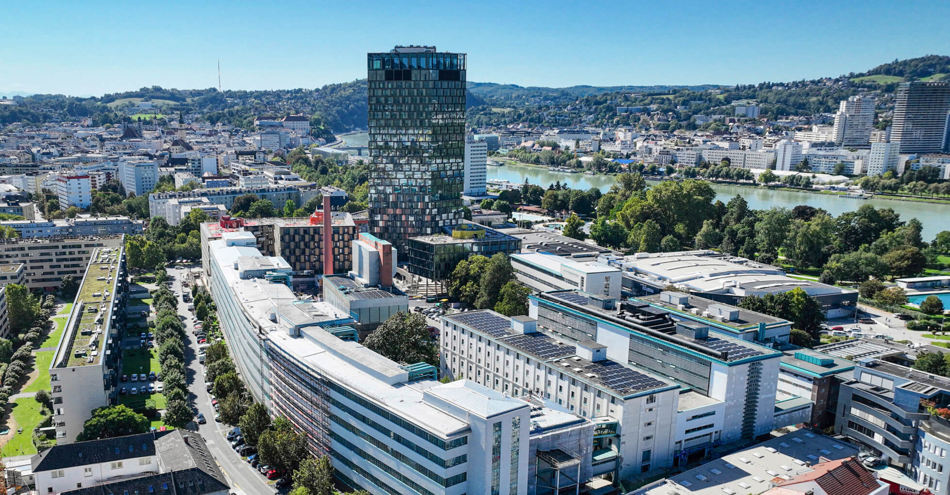 Die letzten spiegelnden Glaselemente der Fassade sind montiert, die ersten Mieter:innen hauchen den 27 Stockwerken bereits Leben ein. Nun feilt man noch am letzten Schliff des neuen Wahrzeichens der Stahlstadt-Skyline bis zur offiziellen Fertigstellung im Februar. Unübersehbar – besonders für Autofahrer:innen, die sich morgens durch das Nadelöhr der Linzer Donaulände quälen – prangt über der neuen Tiefgarageneinfahrt zwischen Parkbad und Tabakfabrik der markante Schriftzug: „Quadrill“. Dieser Name steht für das derzeit spektakulärste Bauprojekt aller österreichischen Landeshauptstädte und markiert (wörtlich wie metaphorisch) den vorläufigen Höhepunkt einer städtebaulichen Entwicklung in der oberösterreichischen Donaumetropole. Mit 109 Metern überragt der Quadrill jedes andere Büro- oder Hotelgebäude außerhalb Wiens. Aber das aus vier Bauteilen bestehende Ensemble zeigt auch eindrucksvoll, wo in Linz die Zukunft pulsiert: Vom Donaupark bis ins Hafengebiet entsteht ein einzigartiges Ökosystem aus Startups, Scale-ups, globalen Playern, Hidden Champions, Netzwerkorganisationen, Gastronomie, Hotellerie sowie Sport-, Kultur- und Gesundheitseinrichtungen. Das Fundament dieses ungewöhnlichen Aufschwungs bildet ein breit aufgestellter IT-Cluster mit namhaften Unternehmen, die dieses Wachstum nachhaltig antreiben. Mit dabei auch ein Ableger des US-Computer-Giganten Apple. Die Apple Technology Engineering Austria B.V. & Co. KG hat ihren Sitz in der Regensburger Straße 1 im Hafenportal und ist die Nachfolgefirma der übernommenen DMCE, eines Spin-offs des früheren Rektors der Johannes Kepler Universität (JKU) Richard Hagelauer. Der Fokus von Apple in Linz liegt in der Entwicklung von Wireless-Technologien wie 5G/6G-Modems, RF-Technik (Radio Frequency) sowie Digital Signal Processing für iPhones und andere Geräte. Seit 2023 wird der Standort massiv ausgebaut – mit inzwischen rund 500 Mitarbeiter:innen. Linz liegt eben nicht mehr nur an der Donau – sondern zunehmend auch an der Digitalen Meile.