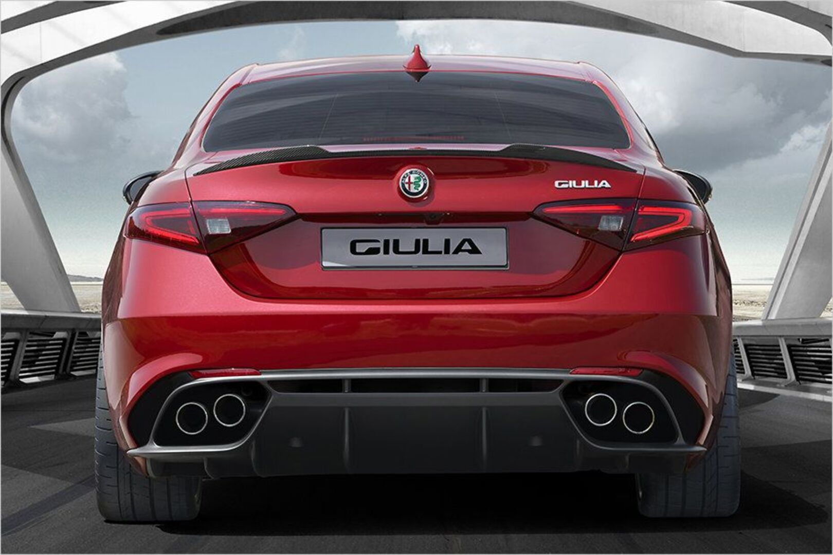 Optisch hat es bei Alfa (abgesehen vom etwas unglücklichen Arna) eigentlich nie geklemmt und auch die neue Giulia macht hier keine Ausnahme. Die Front erhält einen aktiven Spoiler, der den Abtrieb vergrößern soll. Ansonsten gibt es klassische Power-Limousinen-Proportionen mit weit ausgestellten hinteren Radhäusern, kurzen Überhängen, dem längsten Radstand im Segment und einem massiven Hintern mit großem Diffusor und vier fetten Auspuff-Endrohren. Gerade im Heckbereich scheint doch ein wenig Maserati Ghibli durch. Es wird vermutet, dass Ghibli und Giulia auch technisch miteinander verbandelt sind.