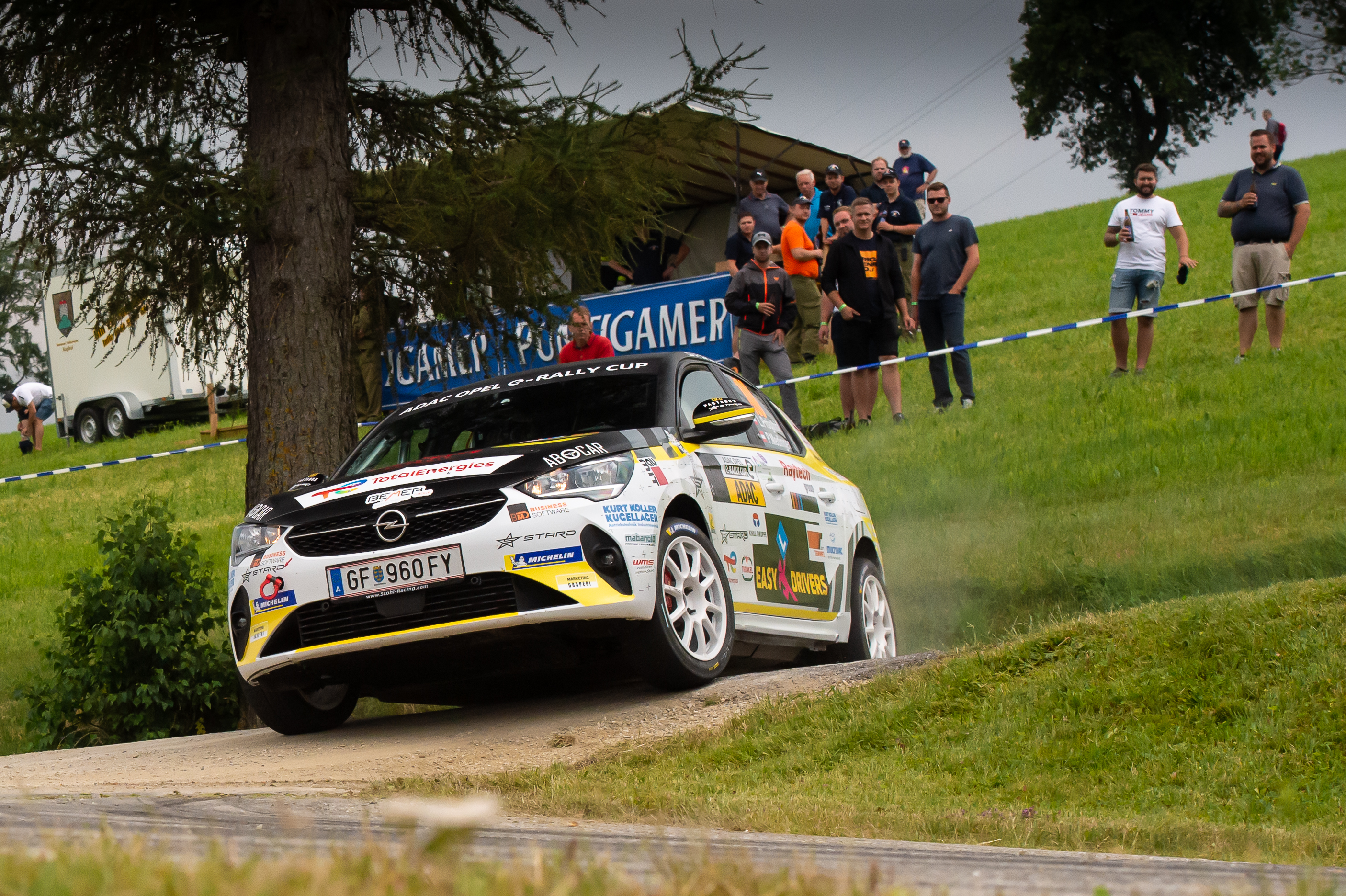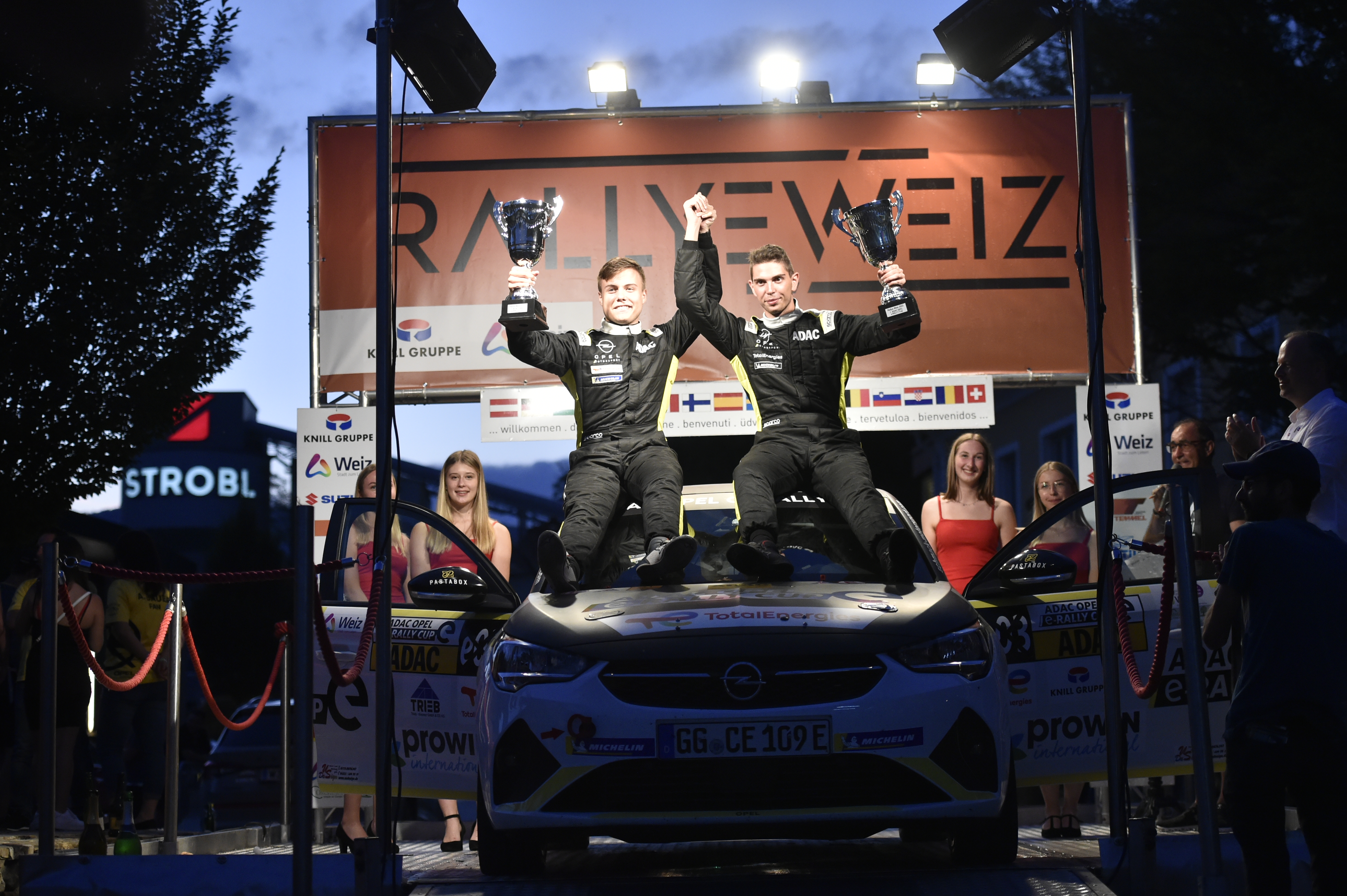 Hochspannung an der Spitze des ADAC Opel e-Rally Cup 2022. Mit seinem ersten Saisonsieg bei der Rallye Weiz rückte Timo Schulz bis auf einen Punkt an die Spitze des Zwischenklassements im ersten elektrischen Rallye-Markenpokal weltweit heran. Der 22-jährige Saarländer und sein Beifahrer Pascal Raabe lagen nach zwölf anspruchsvollen Wertungsprüfungen über mehr als 120 WP-Kilometer 13,6 Sekunden vor den Lokalmatadoren Luca Waldherr/Peter Müller, die für ihren eindrucksvollen Gasteinsatz im ADAC Opel e-Rally Cup allerdings keine Meisterschaftspunkte erhielten. Den dritten Rang in der Gesamt- und damit den zweiten in der Cup-Wertung belegten die Schweden Calle und Torbjörn Carlberg. Als Vierte der Gesamtwertung wurden Lukas Thiele und Jara Hain mit den Punkten für Platz 3 belohnt und hielten damit in der Zwischentabelle die vierte Position.