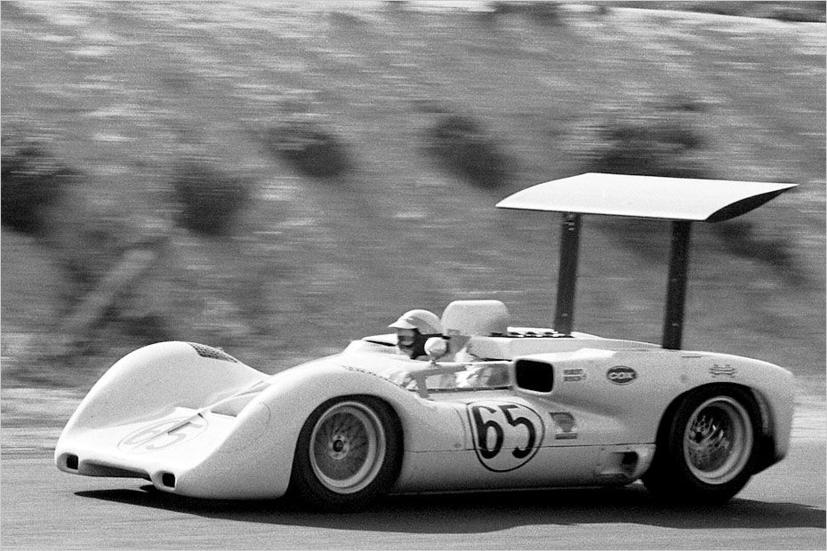 Spätere Varianten fielen mit ihrem extrem hohen Flügel auf (Bild: Chaparral 2E von 1966)