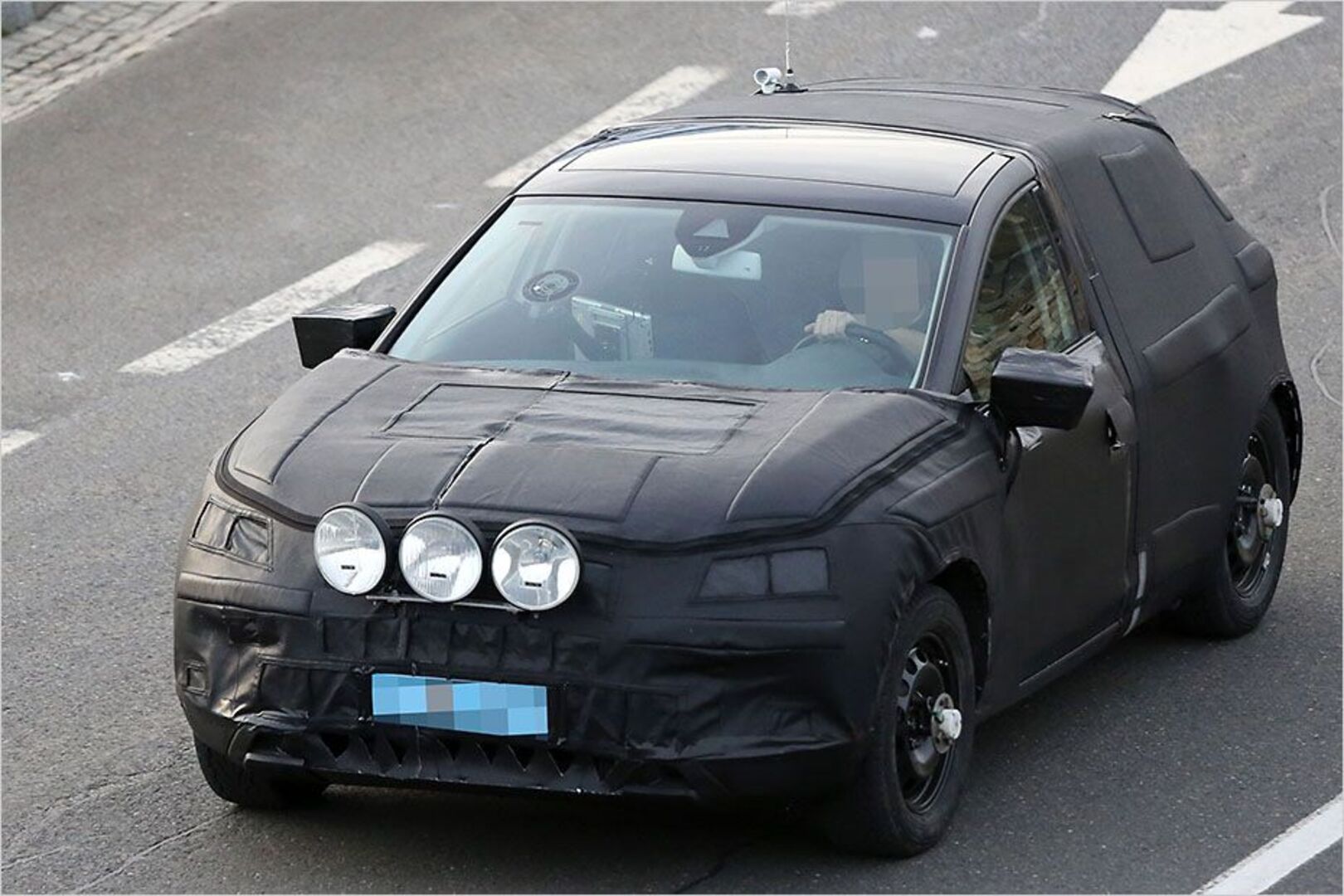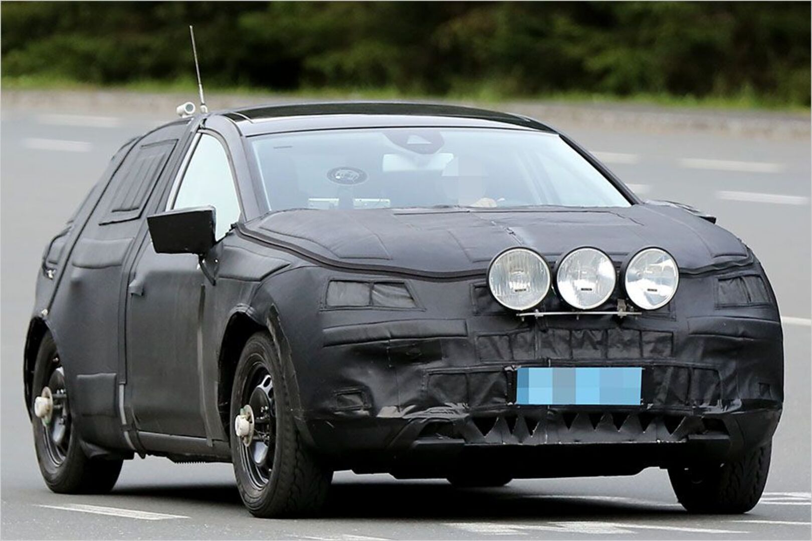 Auffallend sind die drei zu Testzwecken montierten Zusatzscheinwerfer, wie sie in Skandinavien häufig sind