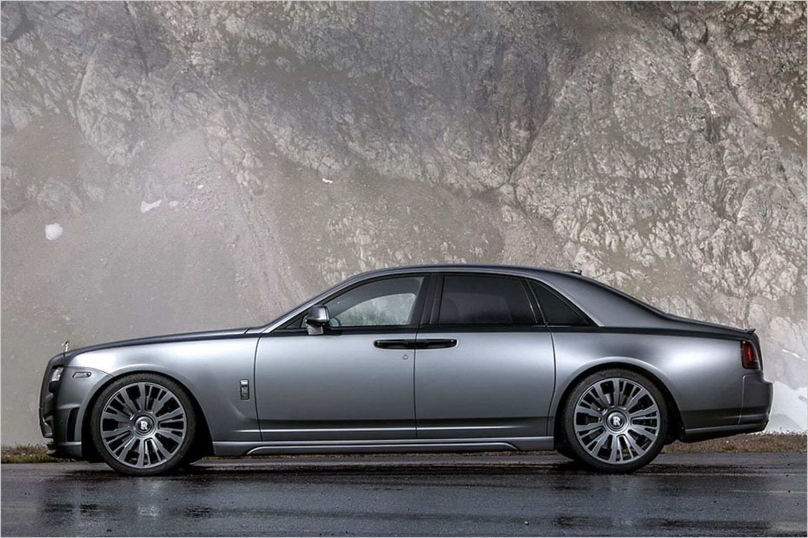 Ein spezielles Fahrwerksmodul greift in die Steuerung der Luftfederung ein und senkt den Ghost bis 140 km/h um etwa 40 Millimeter ab. Bei höherem Tempo hebt sich die Karosserie automatisch wieder an. Beim Stoppen hilft eine Carbon-Keramik-Bremse mit innenbelüfteten Scheiben der Größen 405x30 (vorn) und 395x38 Millimeter. Mit dieser Anlage werden zudem 38 Kilogramm an Gewicht eingespart.
