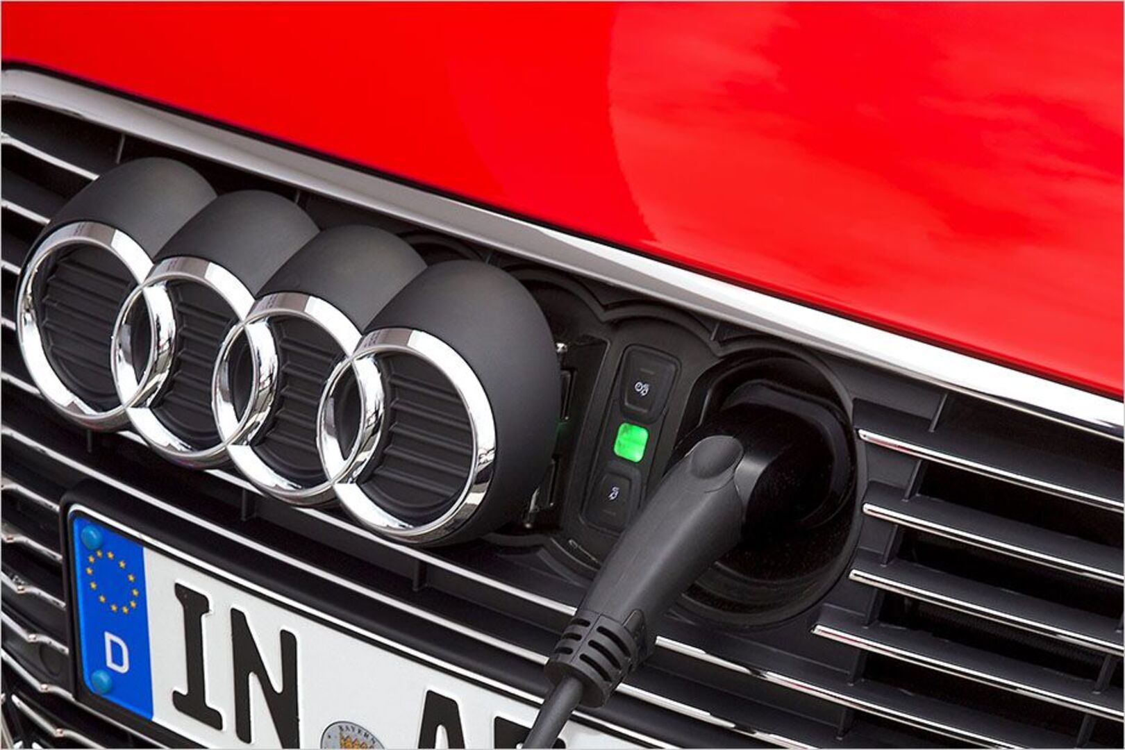 Aufgeladen wird der Audi über einen Ladeport hinter den vier Ringen an der Nase. Das Markensymbol wird dazu beiseite geklappt. An der Haushaltssteckdose dauert das Laden der 8,8 kWh fassenden Batterie rund vier Stunden, an der Industriesteckdose nur die Hälfte der Zeit. Ein Schnellladesystem würde sich bei diesen Ladezeiten nicht lohnen. Batterie und E-Motor werden beim e-tron aber flüssig gekühlt. Diese aufwendige Lösung wurde gewählt, damit trotz der großen Elektroleistung auch bei Hitze noch elektrisch gefahren werden kann, ohne dass die Komponenten zu heiß werden. Auch bei Kälte bleibt der E-Antrieb nutzbar: ein Plus für die Alltagstauglichkeit.