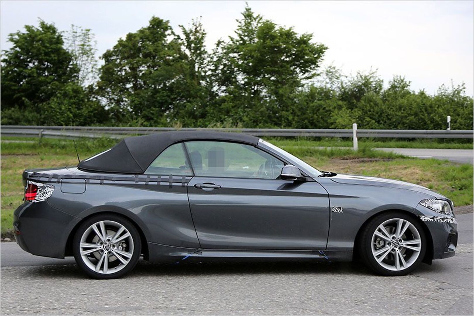 Nur noch leicht getarnt erprobt BMW die Cabrioversion der 2er-Reihe, hier in der Ausführung mit M-Sportpaket