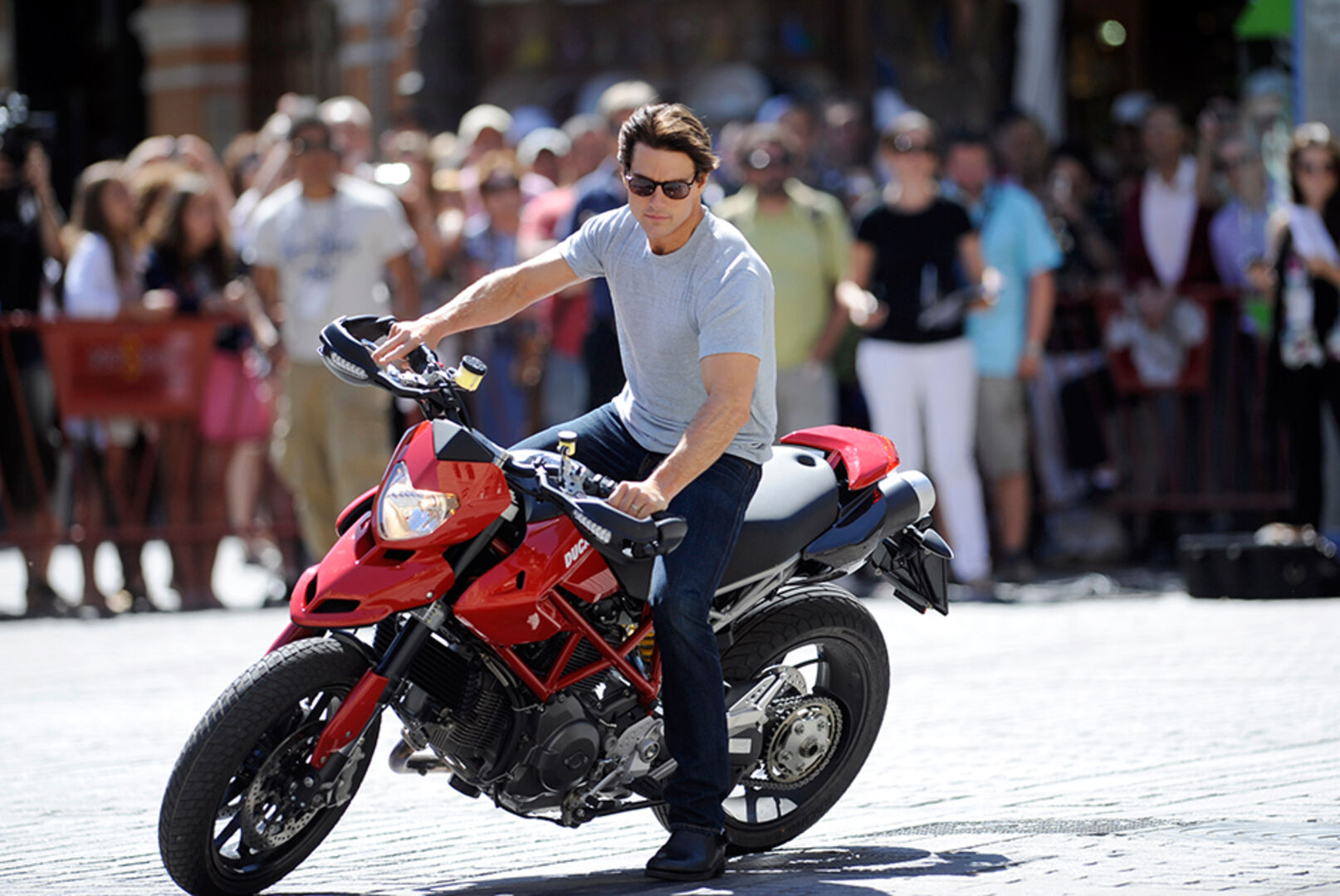 Tom Cruise macht die meisten Stunts in seinen Filmen selbst. In Sevilla stellte er die coolsten Fahrszenen aus "Knight and Day" auf seiner Ducati für die Fans…