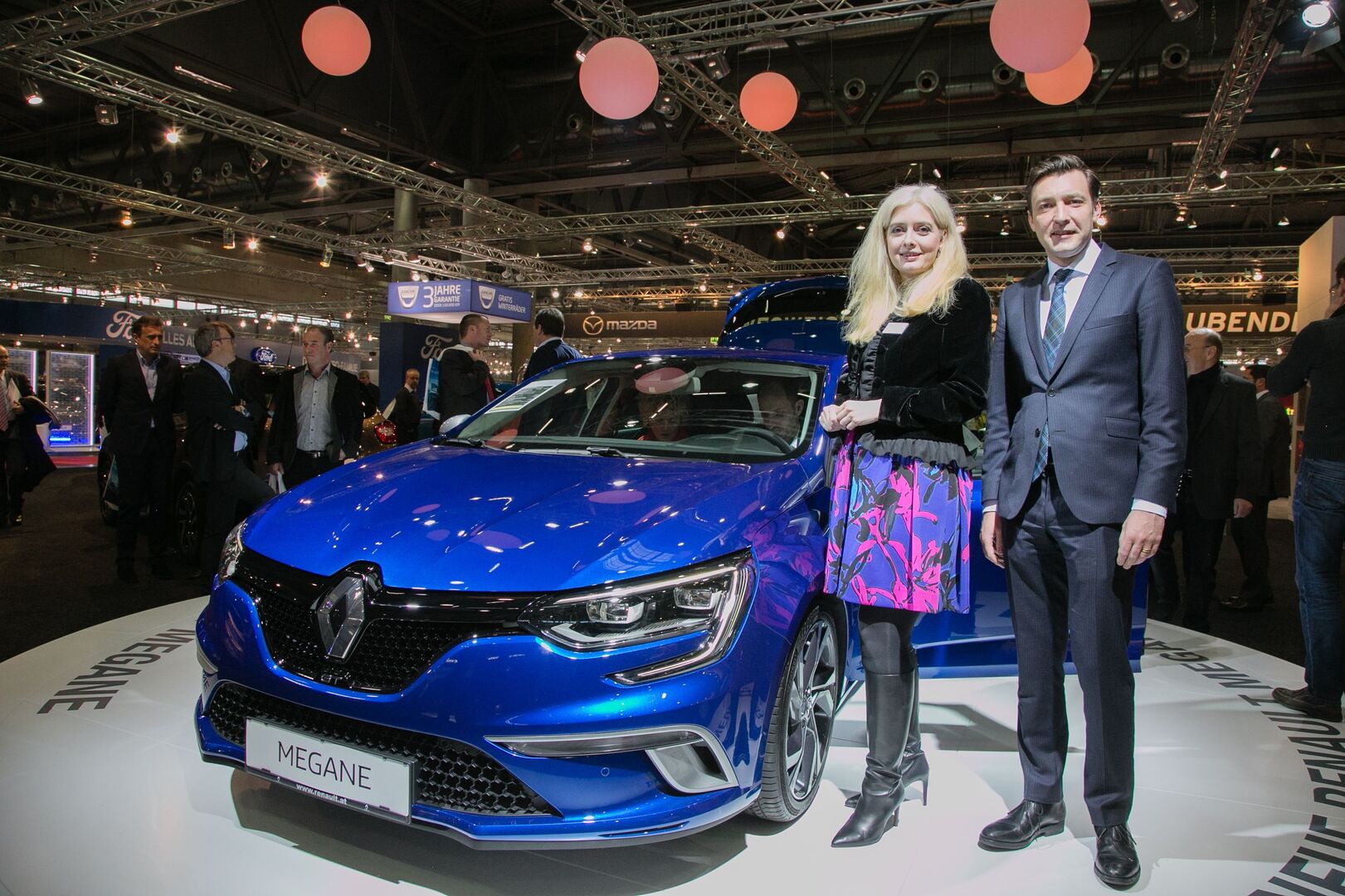 Der neue Renault Mégane mit Allradlenkung 4CONTROL war erstmals zu sehen. Judith Porstner (Leitung Werbung) und Matthieu Prigent (Marketing-Koordination) von…