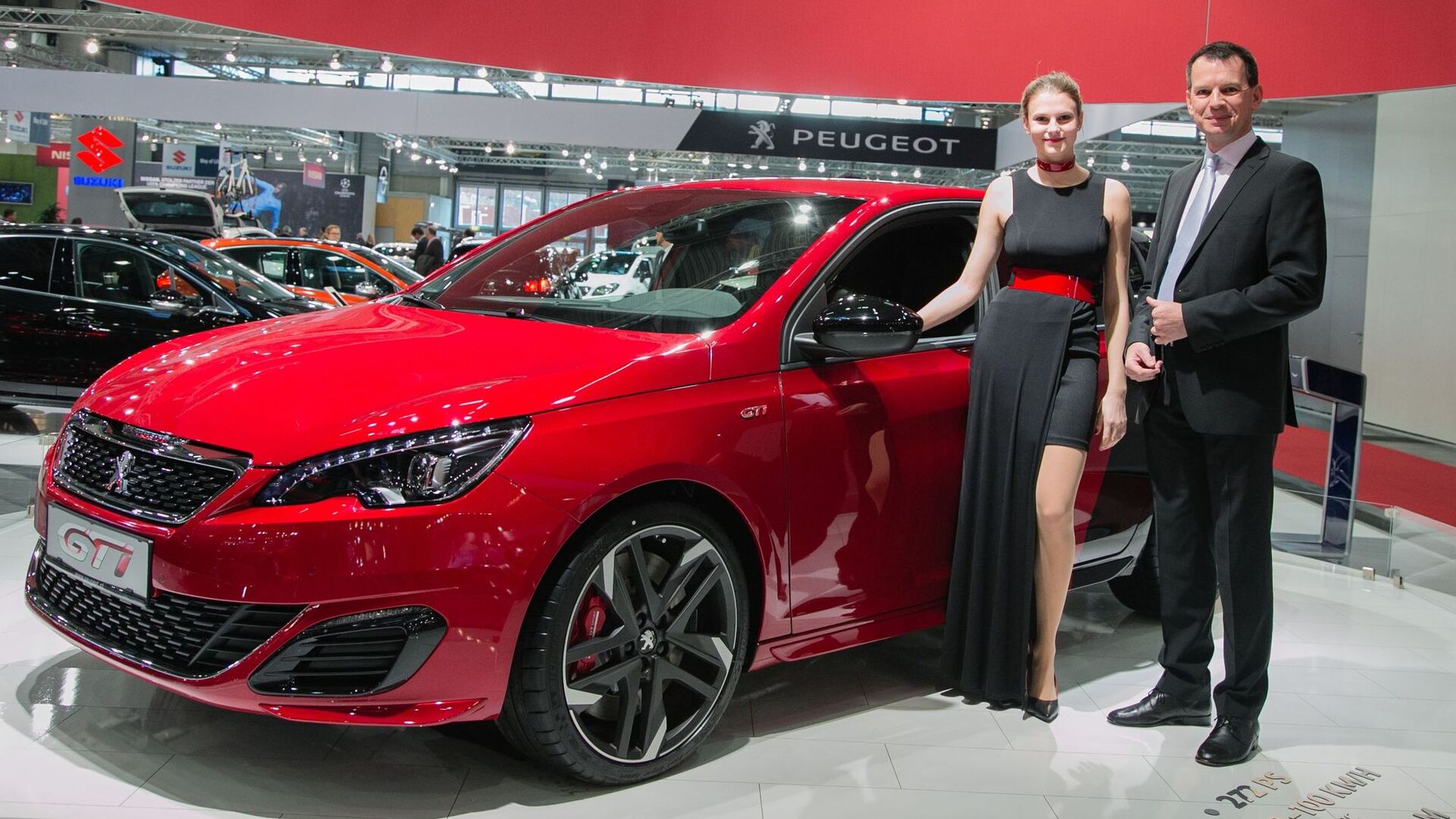 272 PS aus einem 1,6-Liter-Motor leistet der Peugeot 308 GTI, der am Peugeot-Stand zu sehen war. Am Bild: Christoph Stummvoll (Leitung PR, Peugeot Austria).