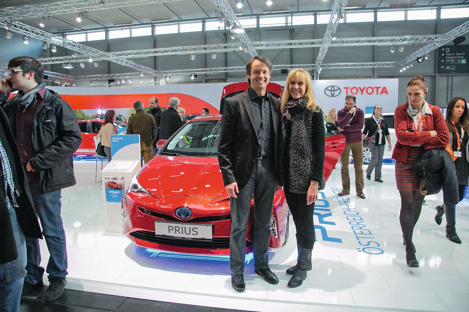 Toyota zeigte den dynamischer gestalteten Prius 2016, den RAV4 Hybrid und den brandaktuellen Mirai. Im Bild: Brigitta und Markus Mitterbauer (Toyota…