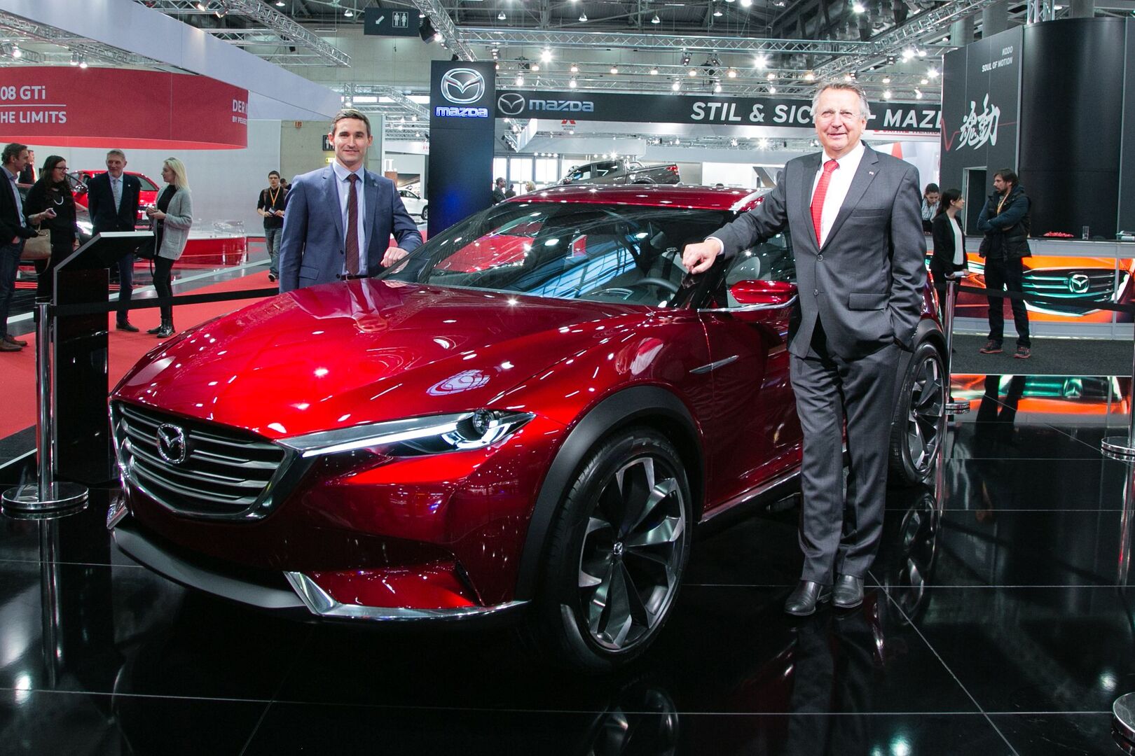 Erstmals wurde die Studie „Koeru“ gezeigt, die wahrscheinlich als Mazda CX-6 bald in die Realität umgesetzt wird. Im Bild: Geschäftsführer Günther Kerle (r.)…