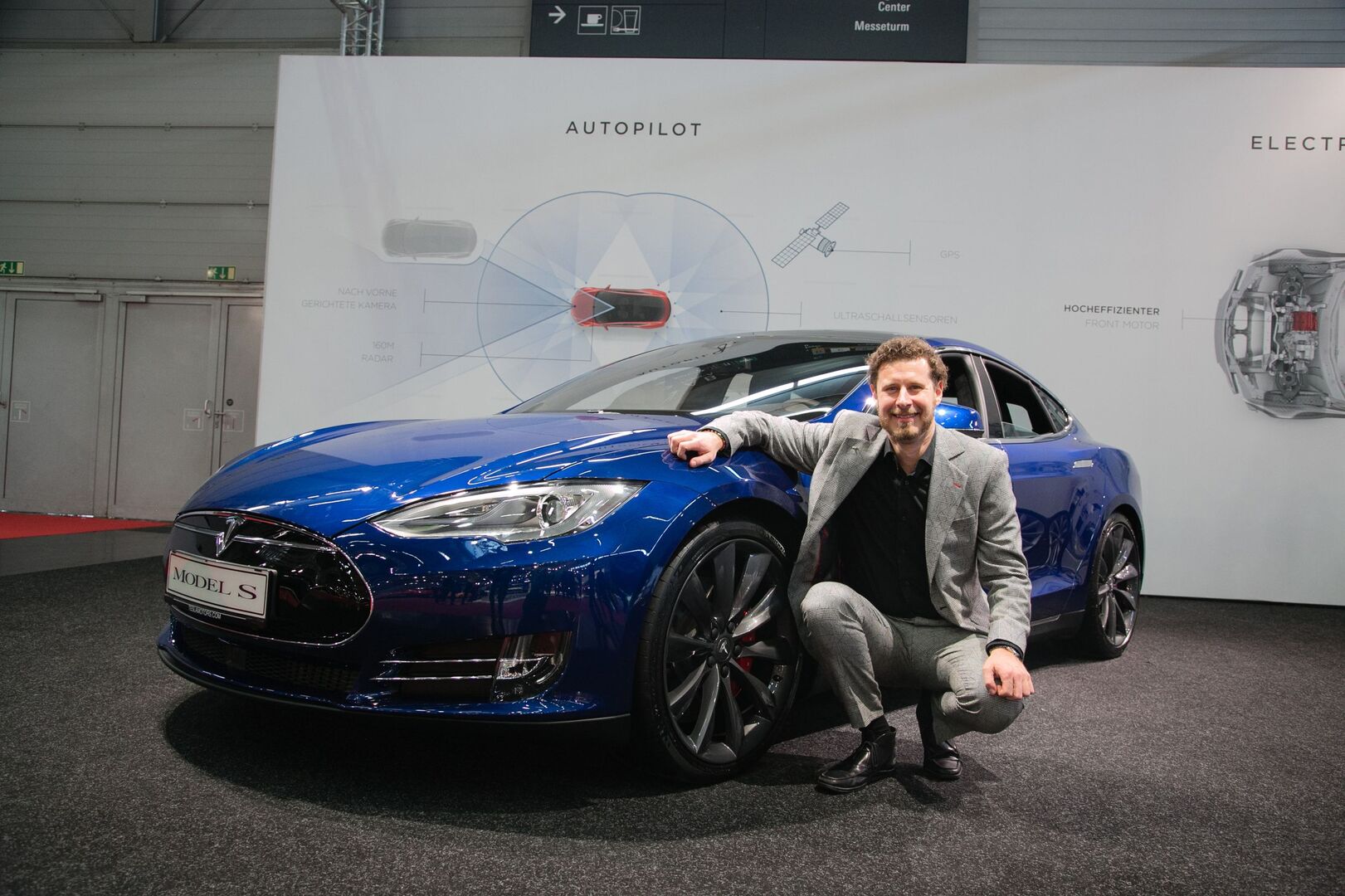 Daniel Hammerl (Country Director, Österreich) mit dem Tesla Model S P90 (Plus Paket). Der Tesla bietet über 700 elektrische PS.
