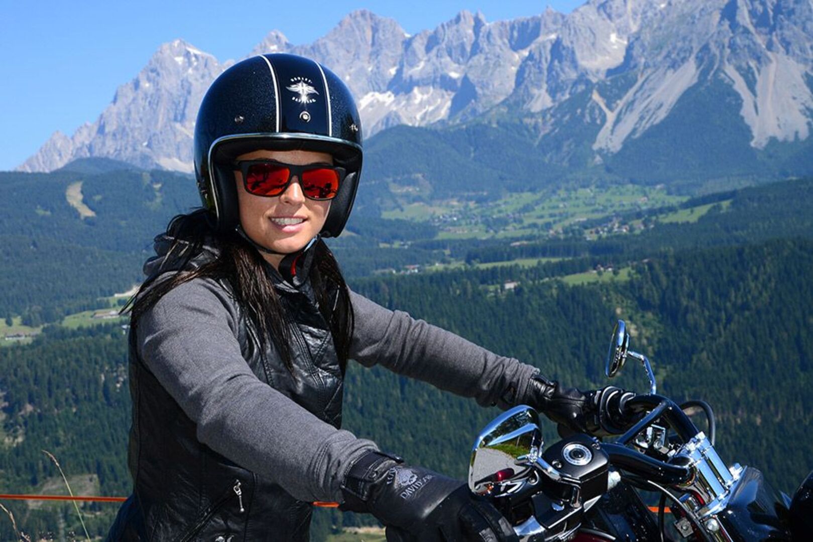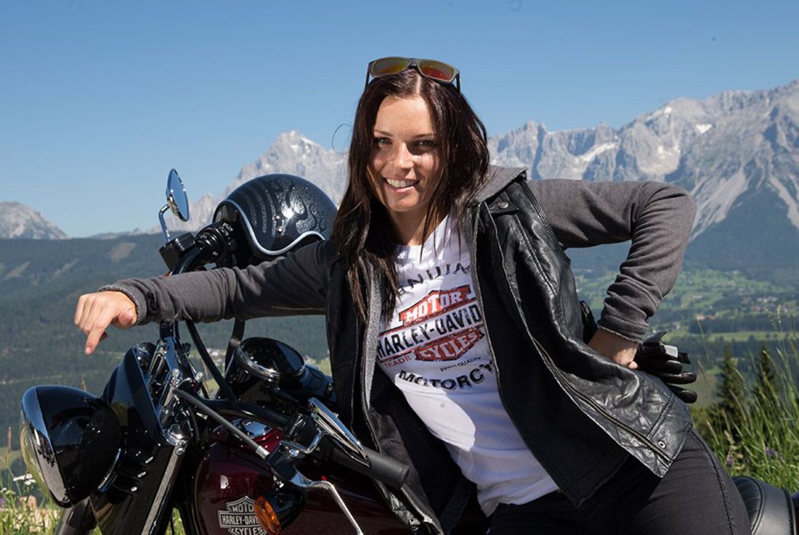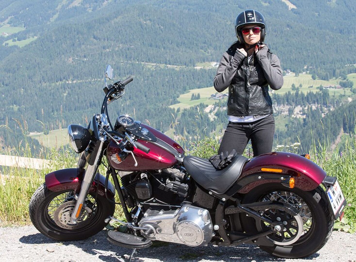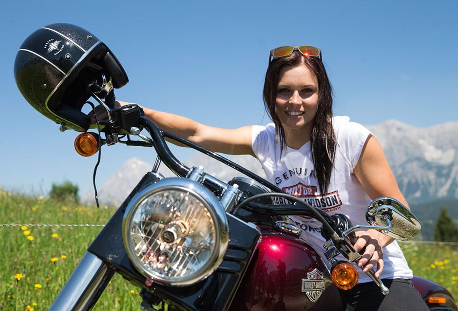 Anna Fenninger bei ihrer Harley-Ausfahrt in Rohrmoos