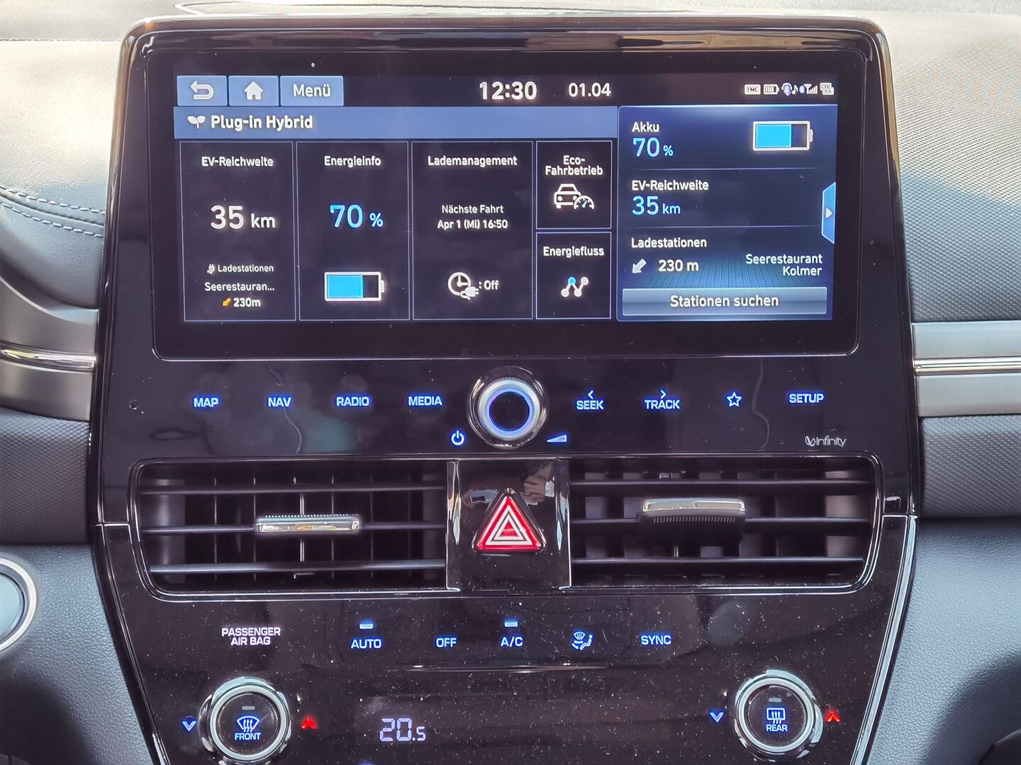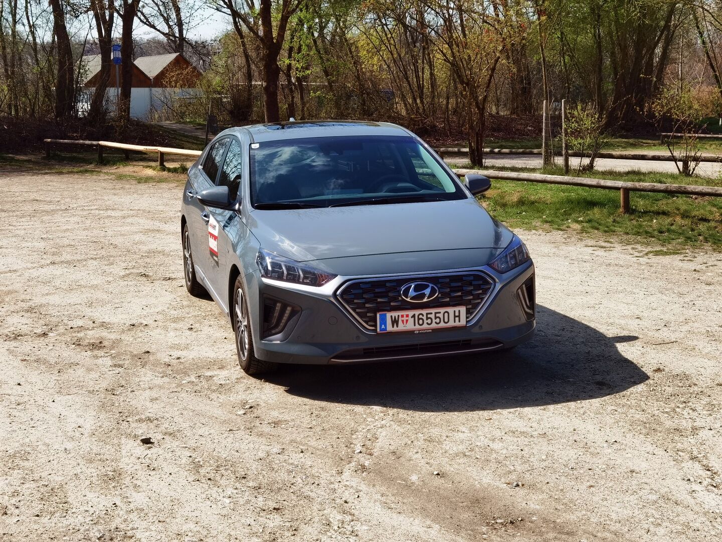 Die Daten des IONIQ-Plug-In sind durchaus beeindruckend. Der 104 PS-starke Benziner wird von einem Elekteromotor, der 61 Pferde beheimatet, ergänzt. Die Systemleistung wird mit 141 PS angegeben. Den rein elektrischen Verbrauch gibt das Werk mit 11,7 kWh/100 Kilometern an (Batteriekapazität: 8,9 kWh). Die rein elektrische Reichweite des Dual-Systems mit 52 Kilometern. Der Benzinverbrauch liegt kombiniert ab Werk bei 1,1 Liter Benzin, der CO2-Ausstoß bei sensationellen 26g/km. Der Benzintank fasst 43 Liter. Die Kraftübertragung erfolgt per DCT-Doppelkupplungsgetriebe. Der IONIQ Plug-In ist zwar kein Sprinter und braucht 10,6 Sekuden von 0 auf 100, aber er fühlt sich in keiner Situation untermotorisiert an. Und bei einem Hybriden sollte man sowieso Beschleunigungsorgien vermeiden um den Verbrauch niedrig zu halten. Stichwort Realverbrauch: Die 1,1 Liter sind eine Fabelangabe und nicht zu erzielen. Im Optimalfall stand bei uns eine 3 vor dem Komma. Also von der Wohnung zum Supermarkt mit viel elektrischem Anteil kamen wir durchaus auf 3,2 Liter. Bei niedrigem Akkustand und viel Benzineranteil waren wir bei rund 5,6 Liter. Geht alles jedoch mehr als in Ordnung und ergibt eine Gesamtreichweite (Elektro und Benzin) - je nach Fahrweise - von bis zu 600 Kilometern. Seine wirkliche Stärke spielt der IONIQ Plug-In aber wie schon erwähnt beim täglichen Pendeln aus. Da kann der Verbrauch extrem niedrig gehalten werden - wir mussten im gesamten Testzeitraum bisher kein einziges Mal zur Zapfsäule, der Elektrostutzen reichte vollkommen aus. Hier bedarf es jedoch ein wenig Zeit einzuplanen, denn selbst an der 40 kW Gleichstromschnellladestation lädt der IONIQ-Plug-In recht langsam. Von ca. 30 Prozent auf 100 Prozent dauert es gut und gerne eineinhalb Stunden. Auch an der 22 kW Ladestation gehen wärend des Einkaufs nur rund 10 - 15 Prozent in den Akku. Am langsamsten lädt es sich an der Haushaltssteckdose. Hyundai gibt eine Ladedauer (0 - 100 Prozent) von rund 3 Stunden und 35 Minuten an. In Ermangelung einer ladefähigen Haushaltssteckdose (Stadt-Tiefgaragenparker) konnten wir dieses Szenario allerdings nicht reproduzieren. Die Fahrleistungen des IONIQ gehen total in Ordnung, er ist weder ein Kurvensprinter, noch ein knallhartes Brett und schon gar keine absolute Komfortschaukel. Die Abstimmung ist sehr gut zum gemütlichen dahincruisen gedacht. Den optionalen Sportmodus haben wir nur einmal kurz ausprobiert und der tut was ein Sportmodus tut: Benziner und E-Motor haben ein aggressiveres Ansprechverhalten und dementssprechend geht auch besser die Post ab. Dem Spritsparfuß hat das aber dann doch weh getan.